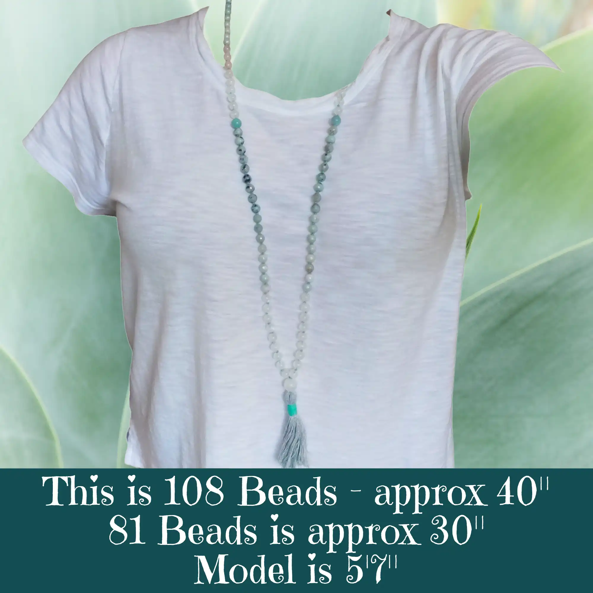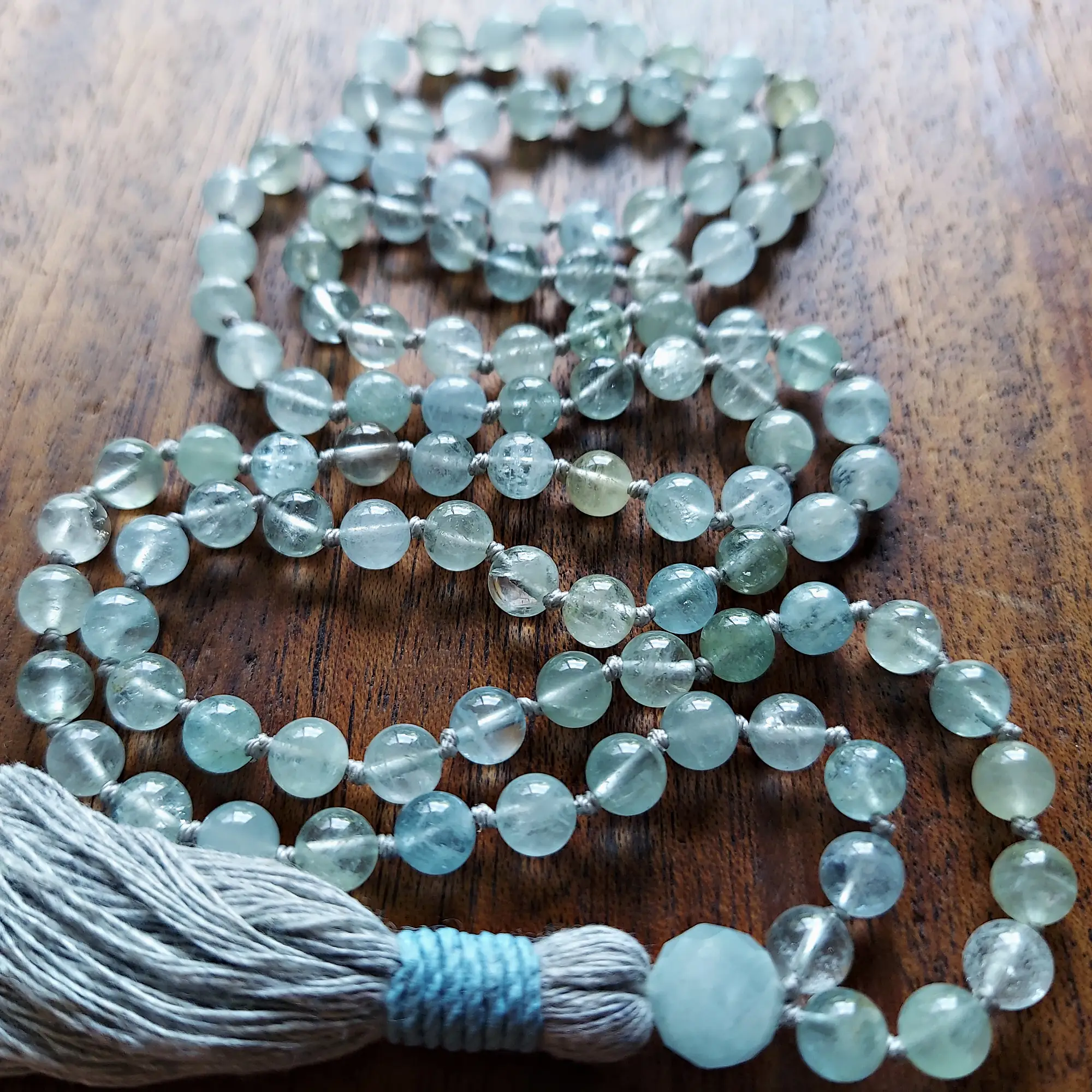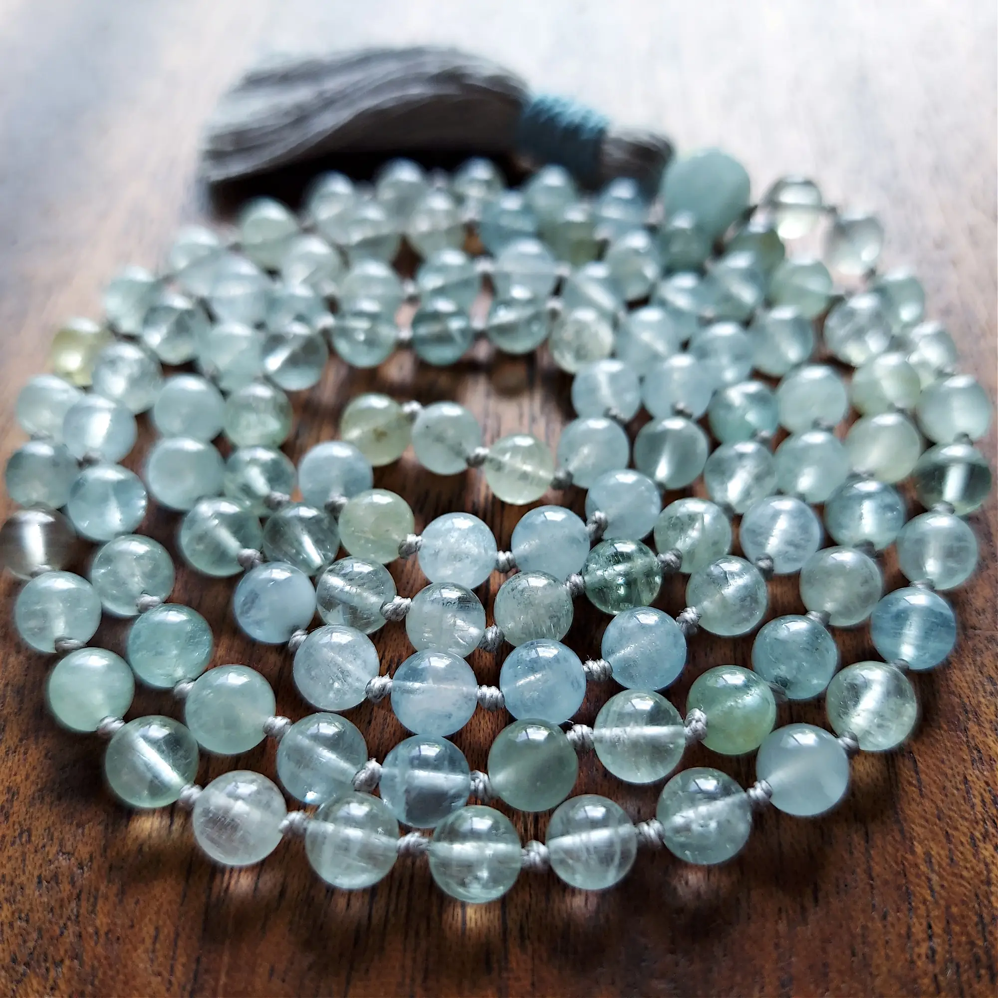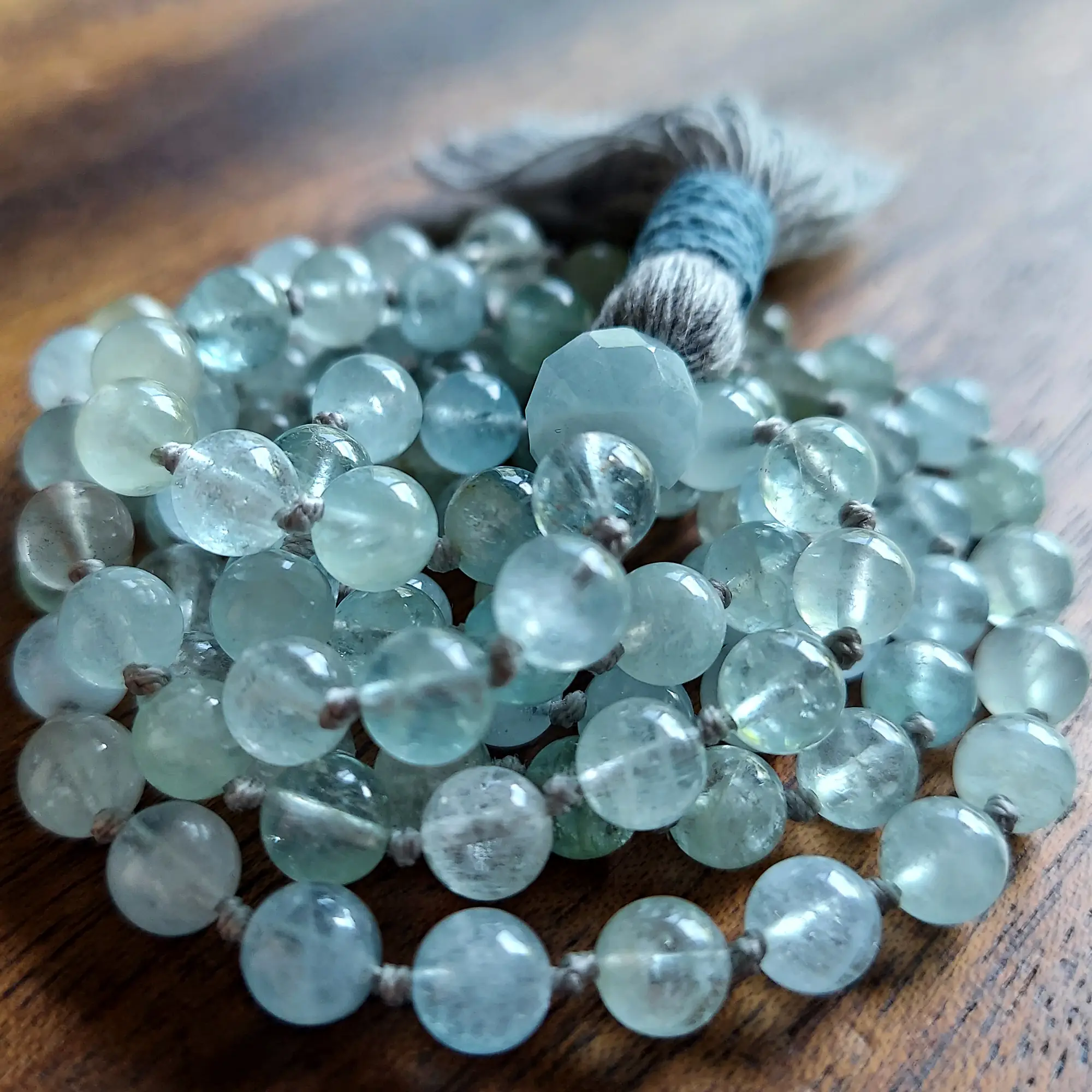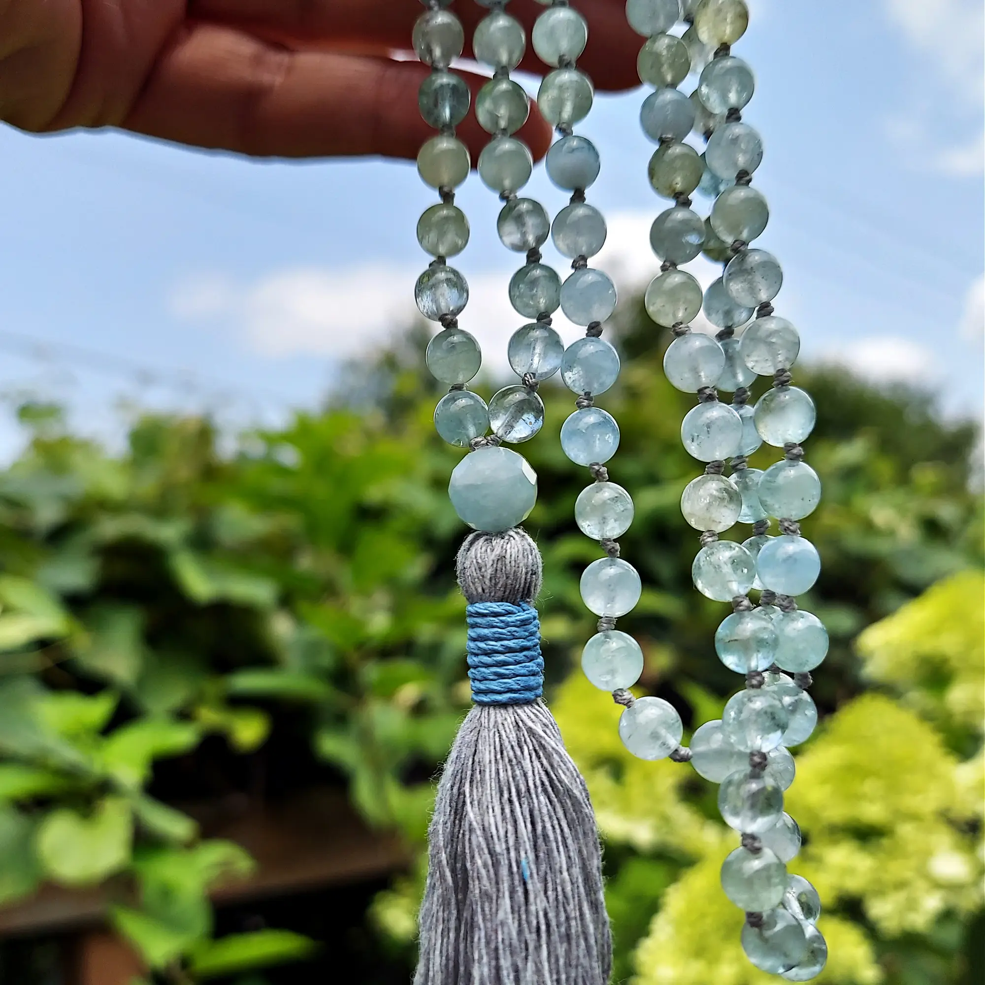Whether you are looking for a healing gemstone necklace, a tool for spiritual growth, or a unique birthstone gift, this Aquamarine Mala Necklace is a perfect choice.