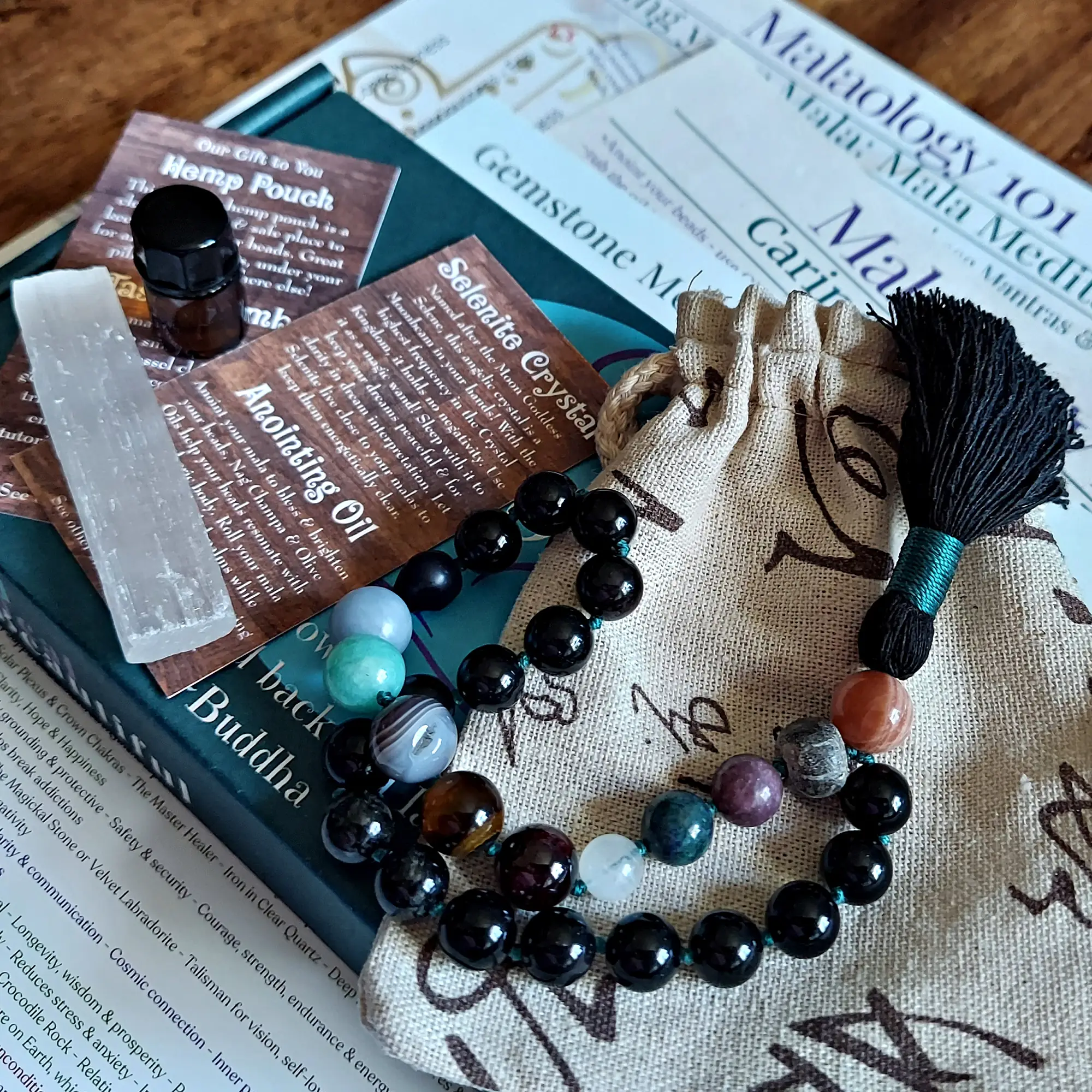 Your all-inclusive mala experience includes a fun and gift-worthy presentation with everything needed for Mala Anointing, Dedication, Use, & Care.