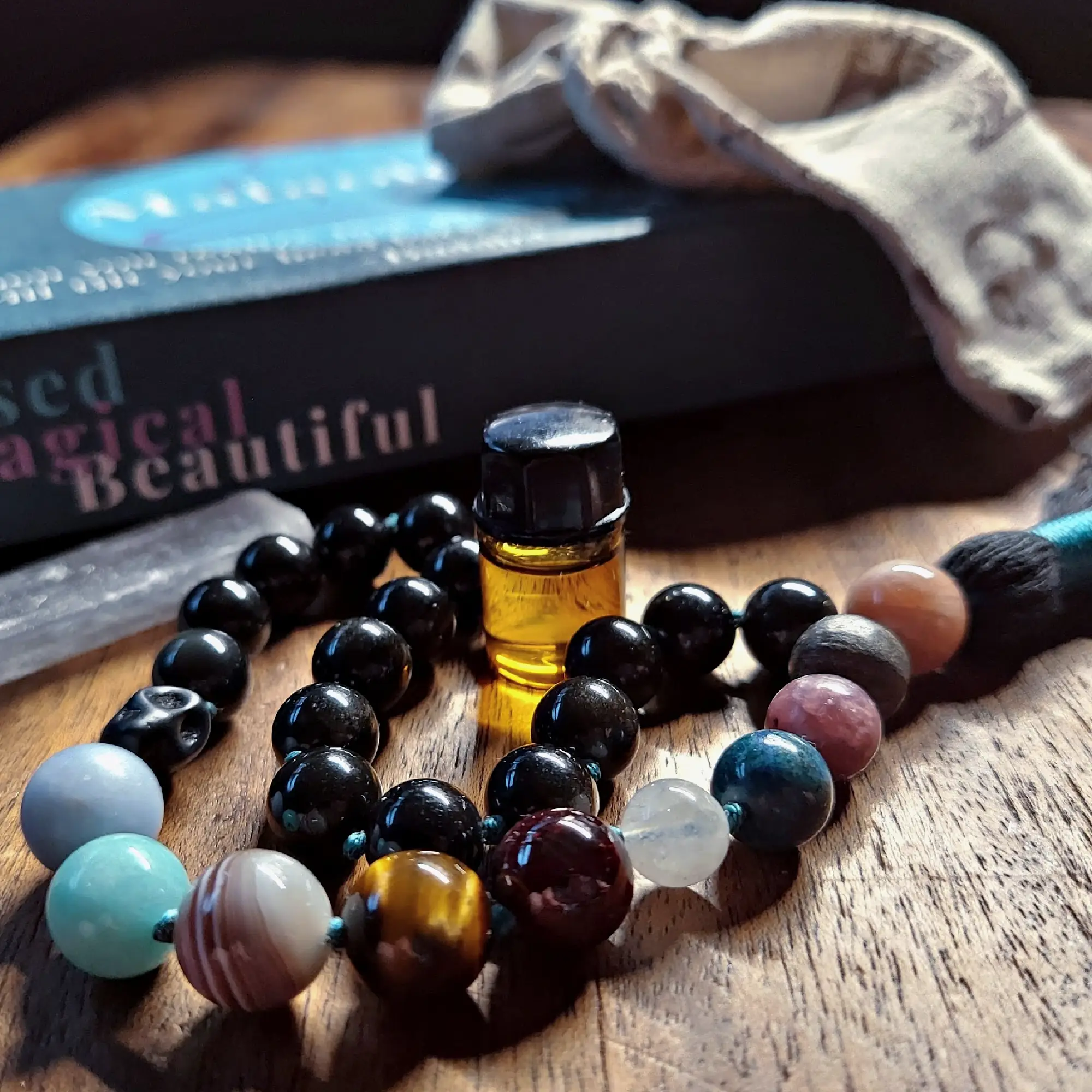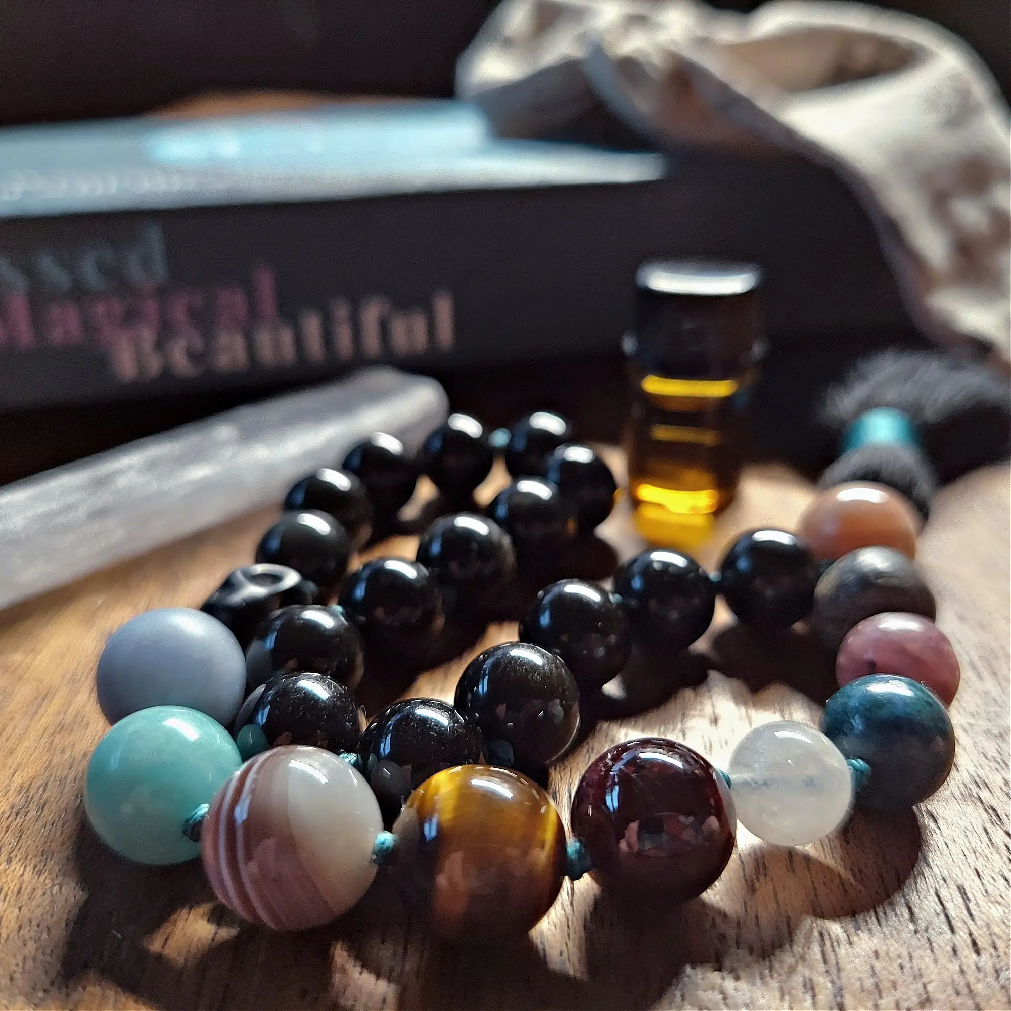 Each bead represents a celestial body, chosen not only for its planetary correspondence but also for its energetic properties, inviting you to tune into the rhythm of the stars while staying rooted to the Earth.
