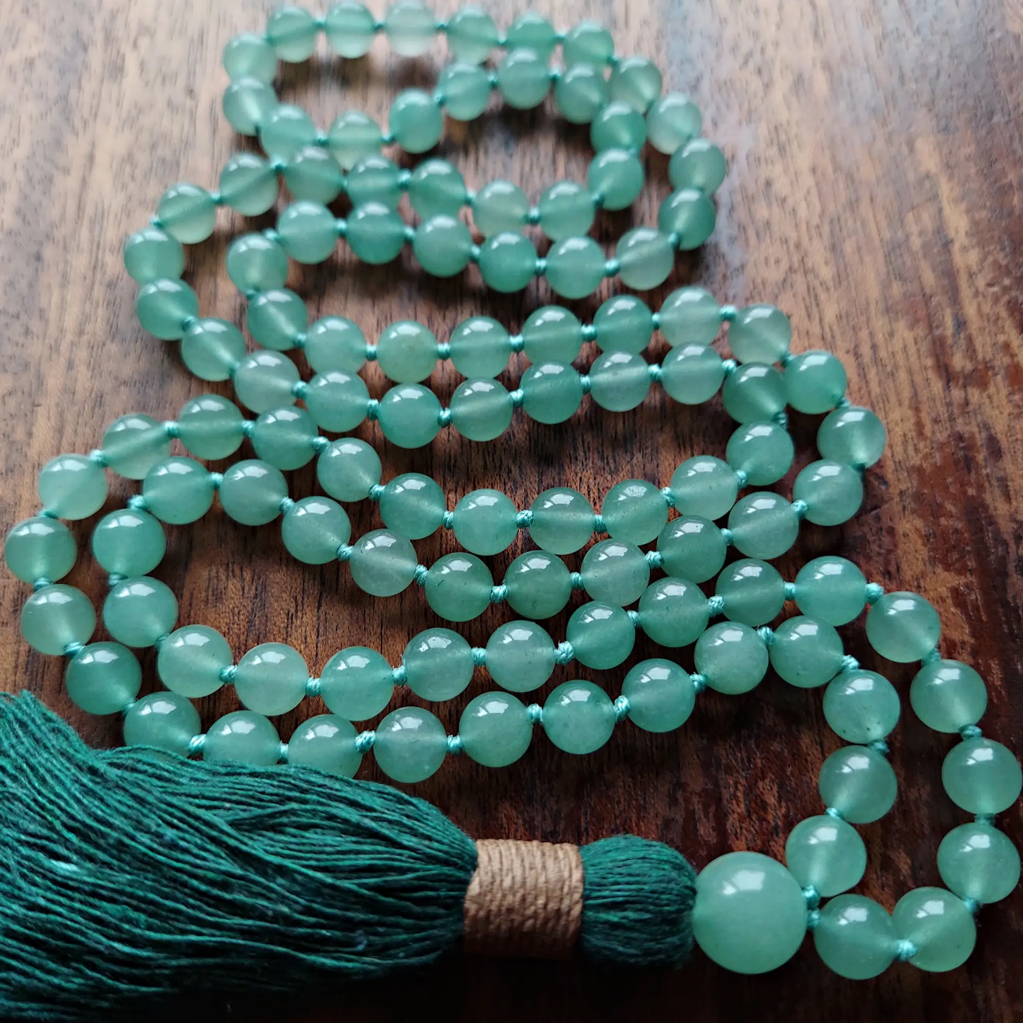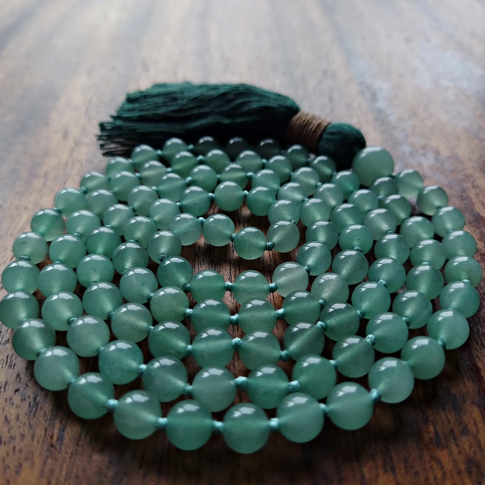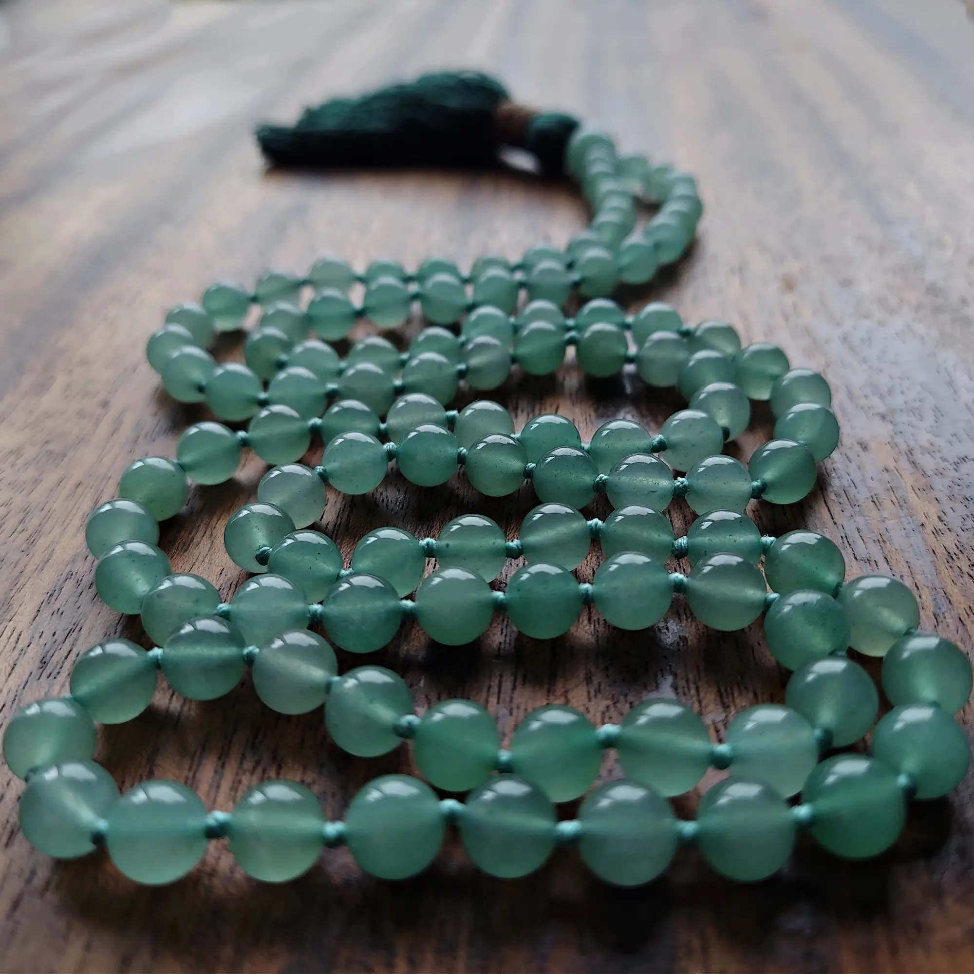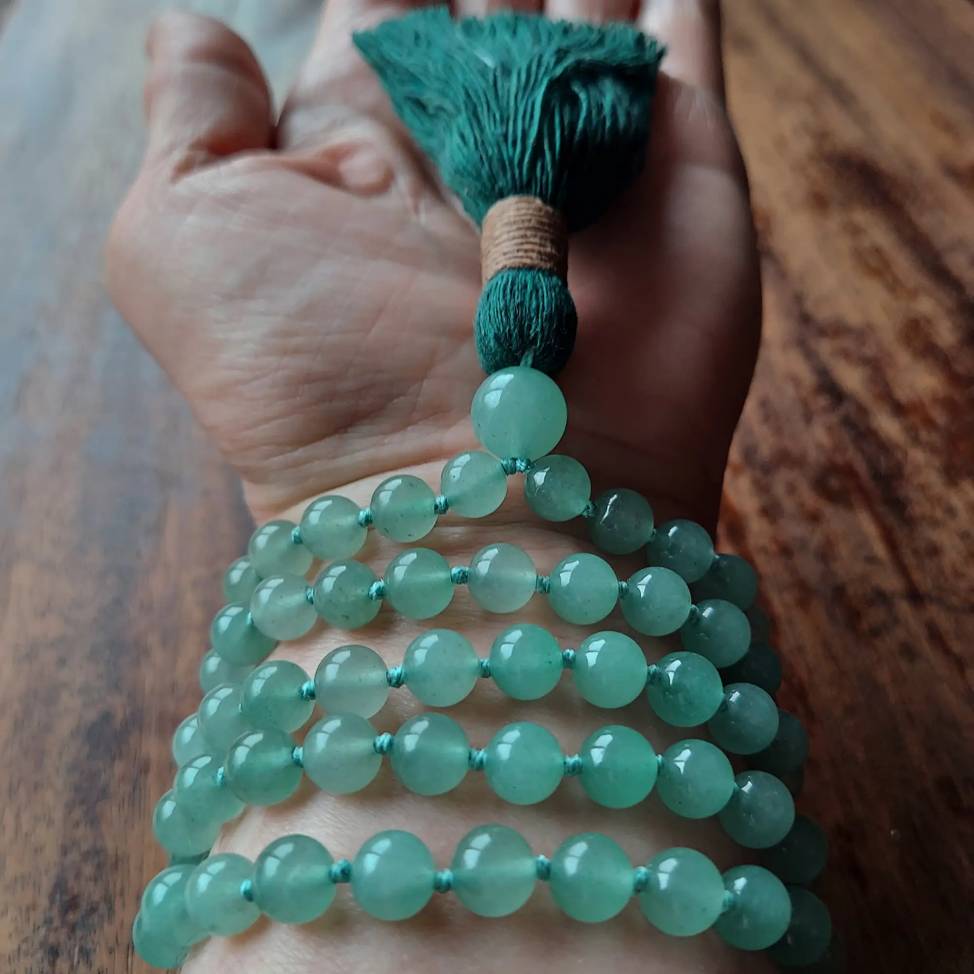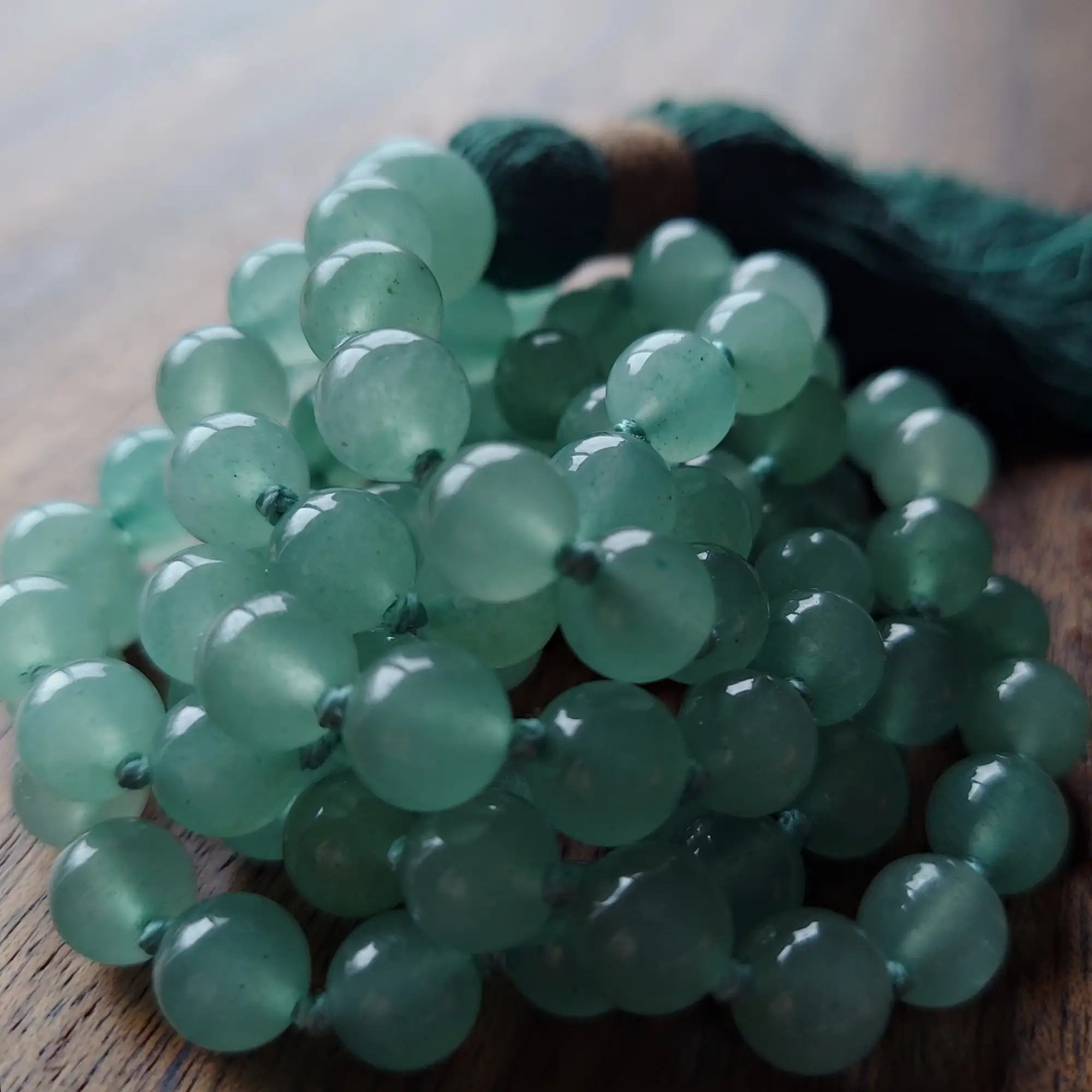 As you hold or wear this Aventurine mala, feel its energy open your heart to abundance and emotional healing. It helps you release past traumas and programming to bring self-love and gratitude.