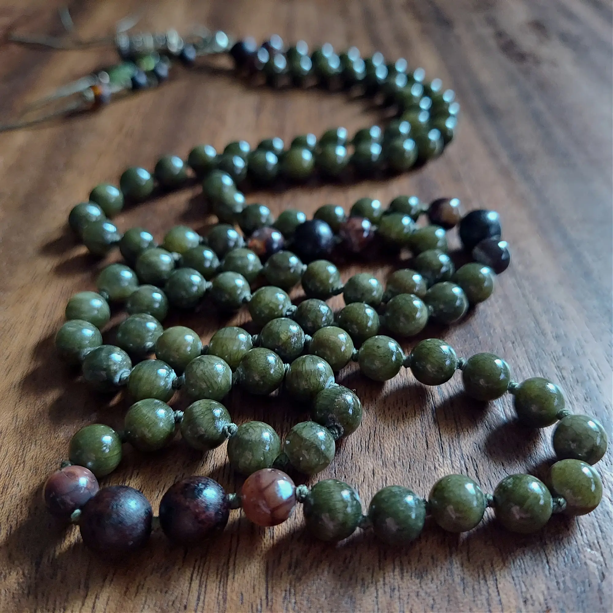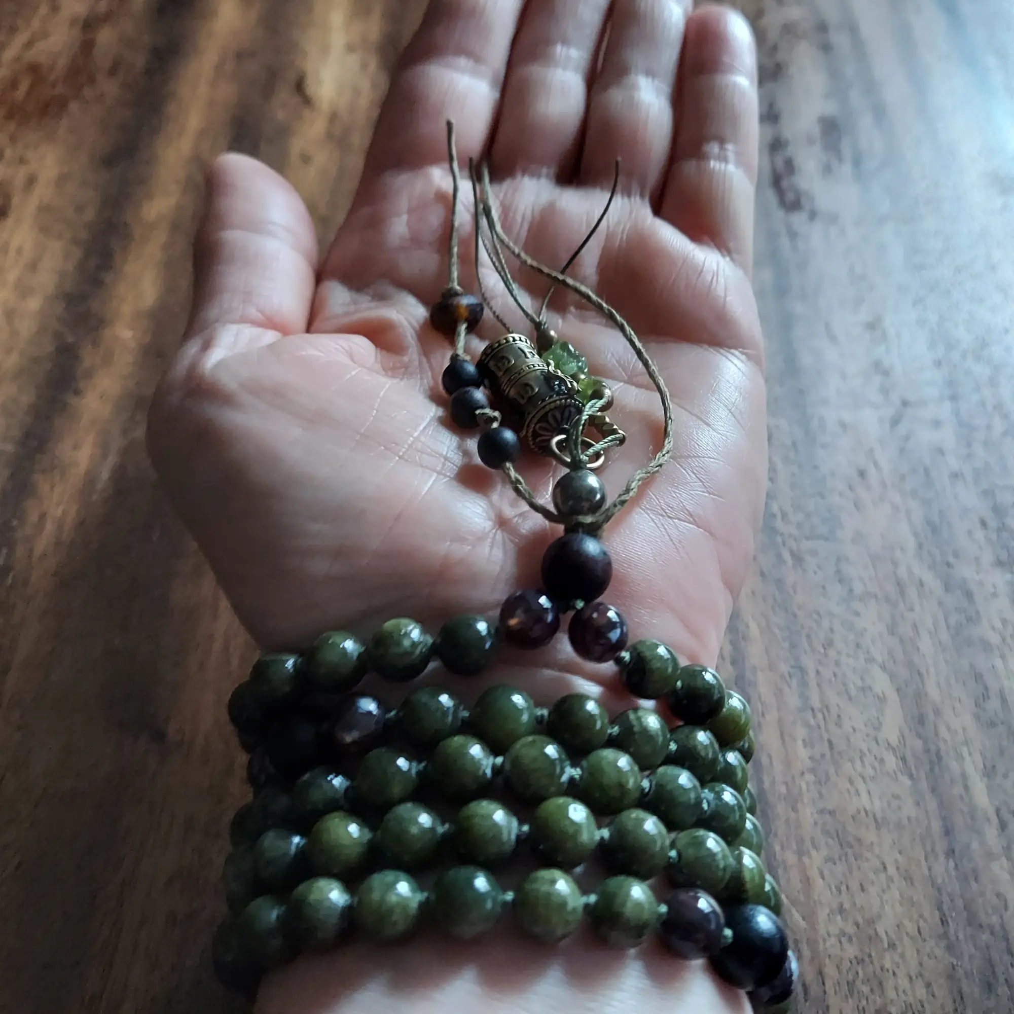 The Green Jade Prayer Mala is designed to nurture your spirit, protect against negative energies, and enhance meditation. Let this mala guide you toward serenity, inner peace, and spiritual abundance.