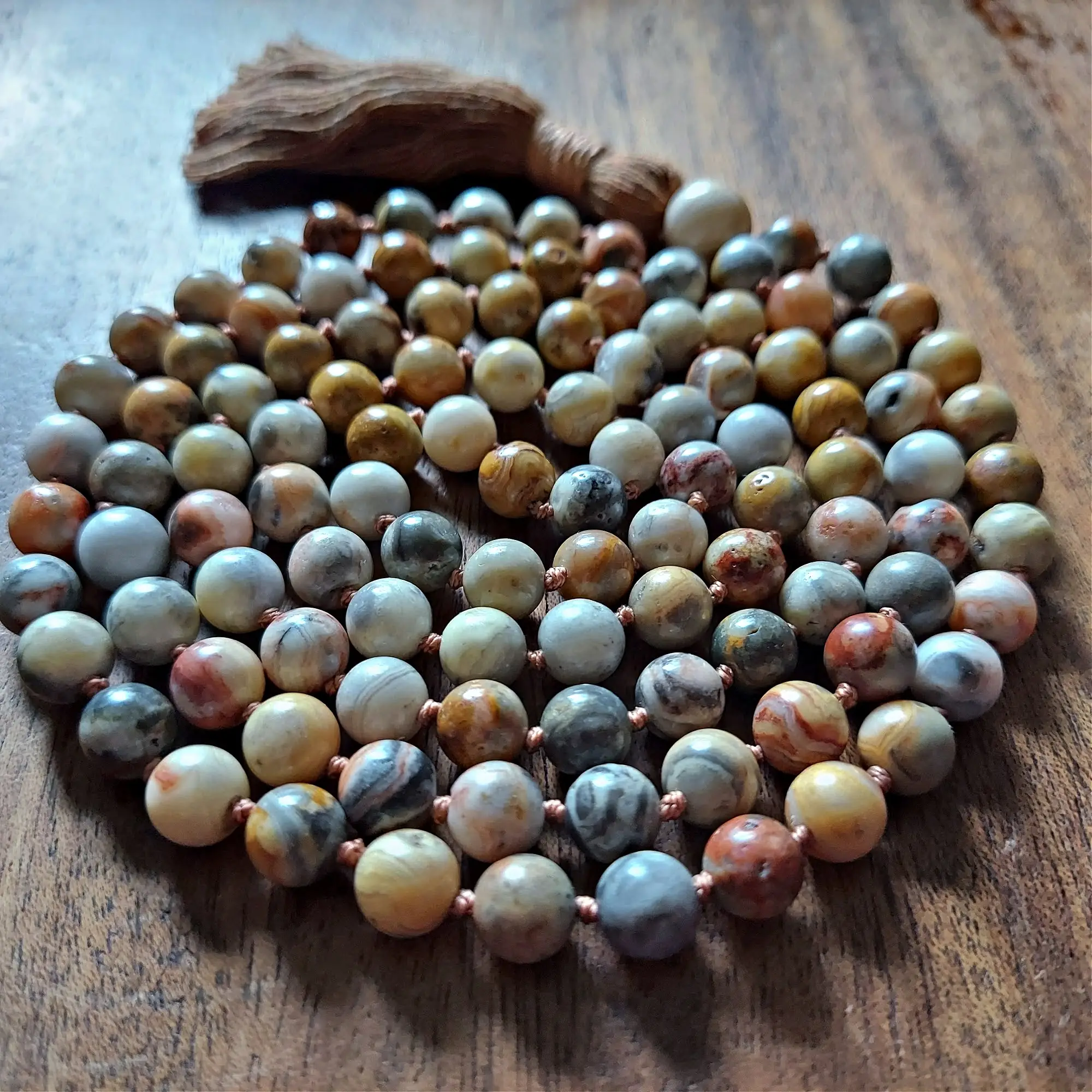 This beautiful Joyful Spirit Mala 🌻📿is handcrafted with Crazy Lace Agate beads (8mm) and a cotton tassel. Deeply connected to the Sacral and Solar Plexus Chakras, this necklace brings joy, inspiration, creativity, vitality, and self-worth.