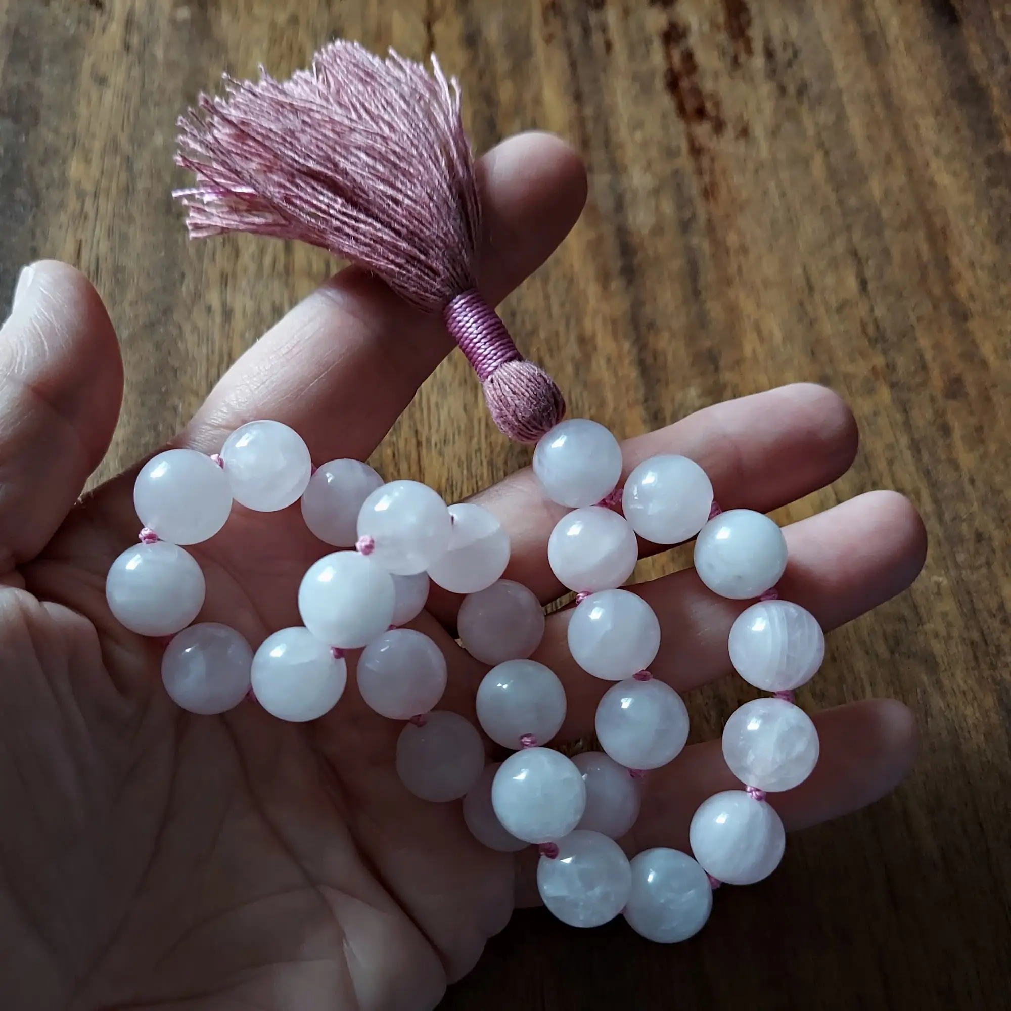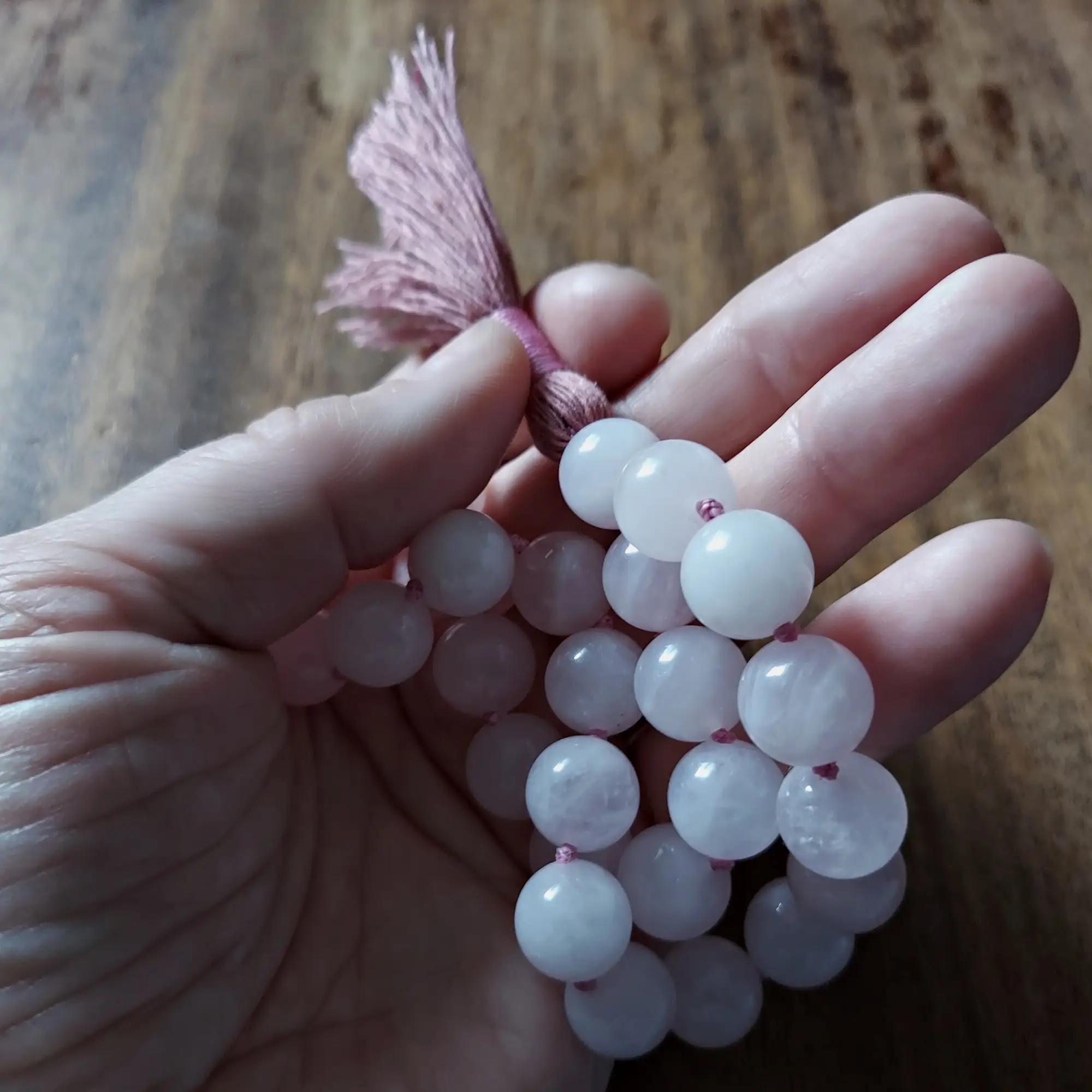 The cotton tassel adds a natural grace, grounding the flow of this sacred tool in softness and intention. Whether used for daily affirmations, breathwork, or moments when your heart needs a gentle anchor, this mala is a balm for the soul.
