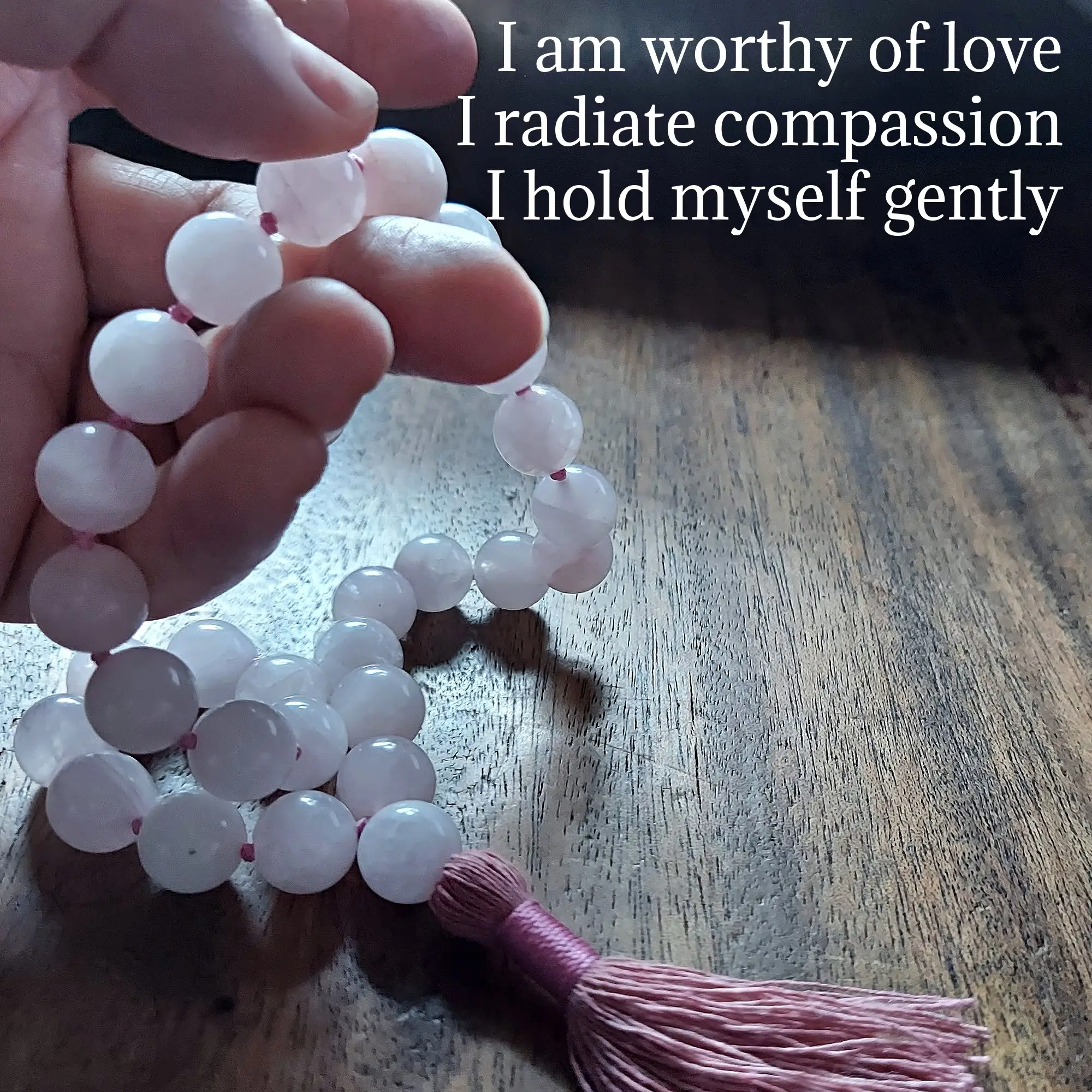 🎁 Makes a beautiful gift for friends, loved ones, or your own journey of self-love. Feminine, minimal, powerful, this Rose Quartz Pocket Mala is a talisman of love and light.
