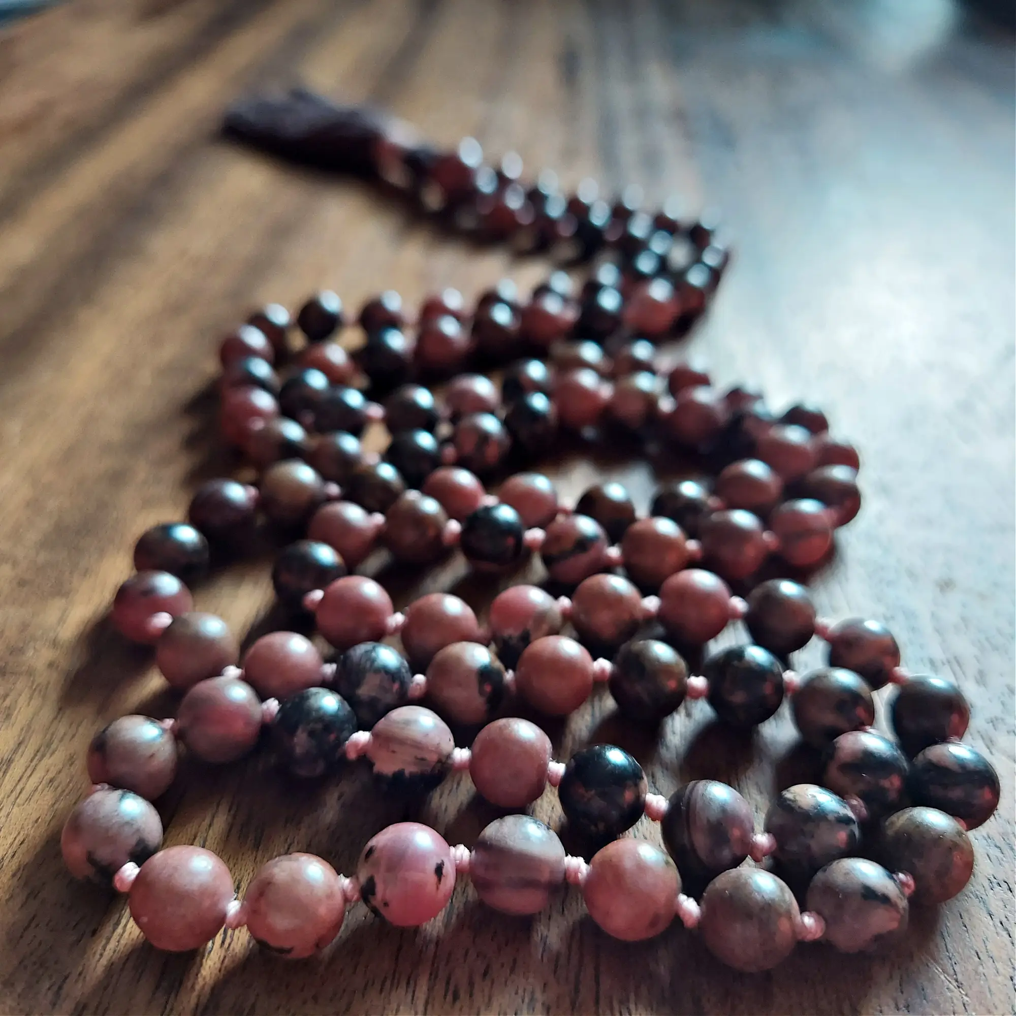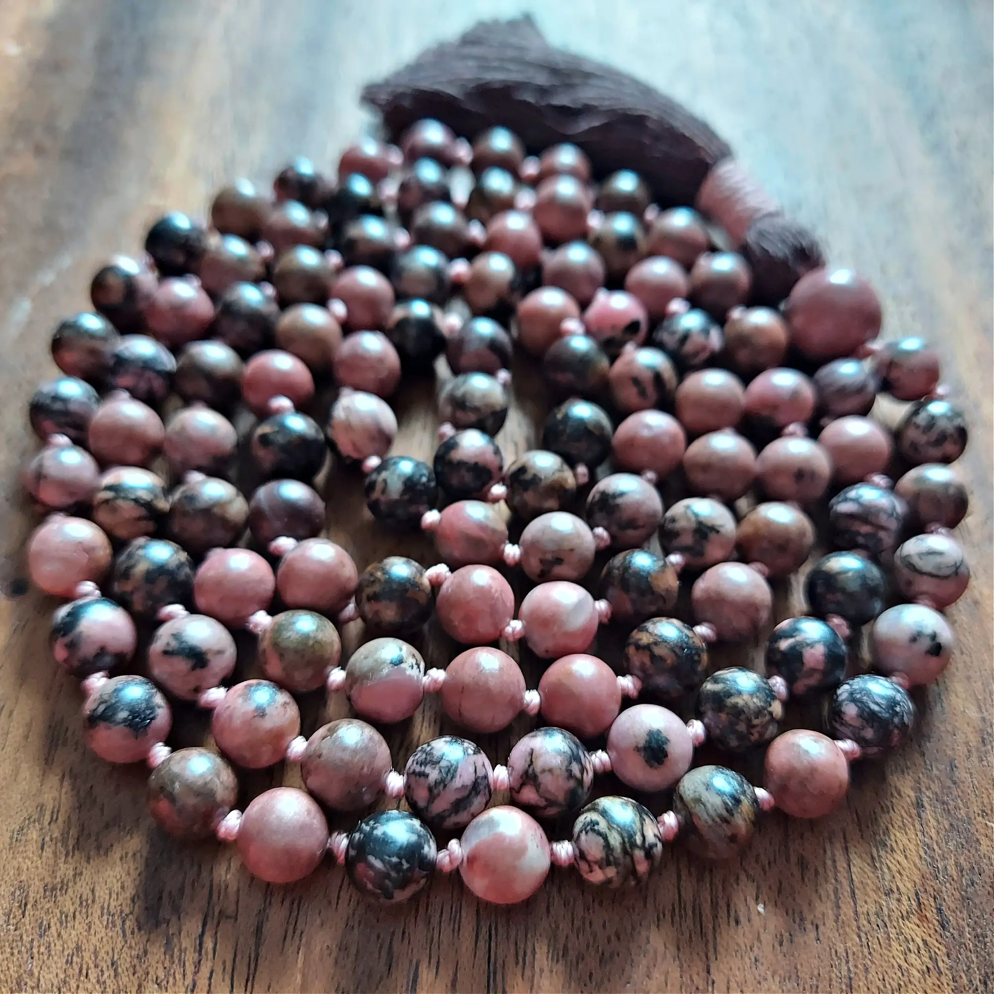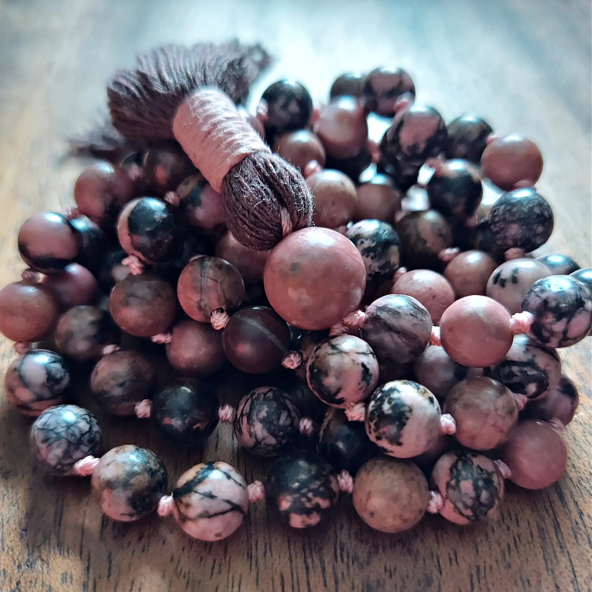 Embrace the heart-opening power of Rhodonite with this earthy yet elegant mala, made to bring balance, love, and emotional healing into your life. The soft pink and earthy tones of Rhodonite beads resonate a nurturing and grounding energy.