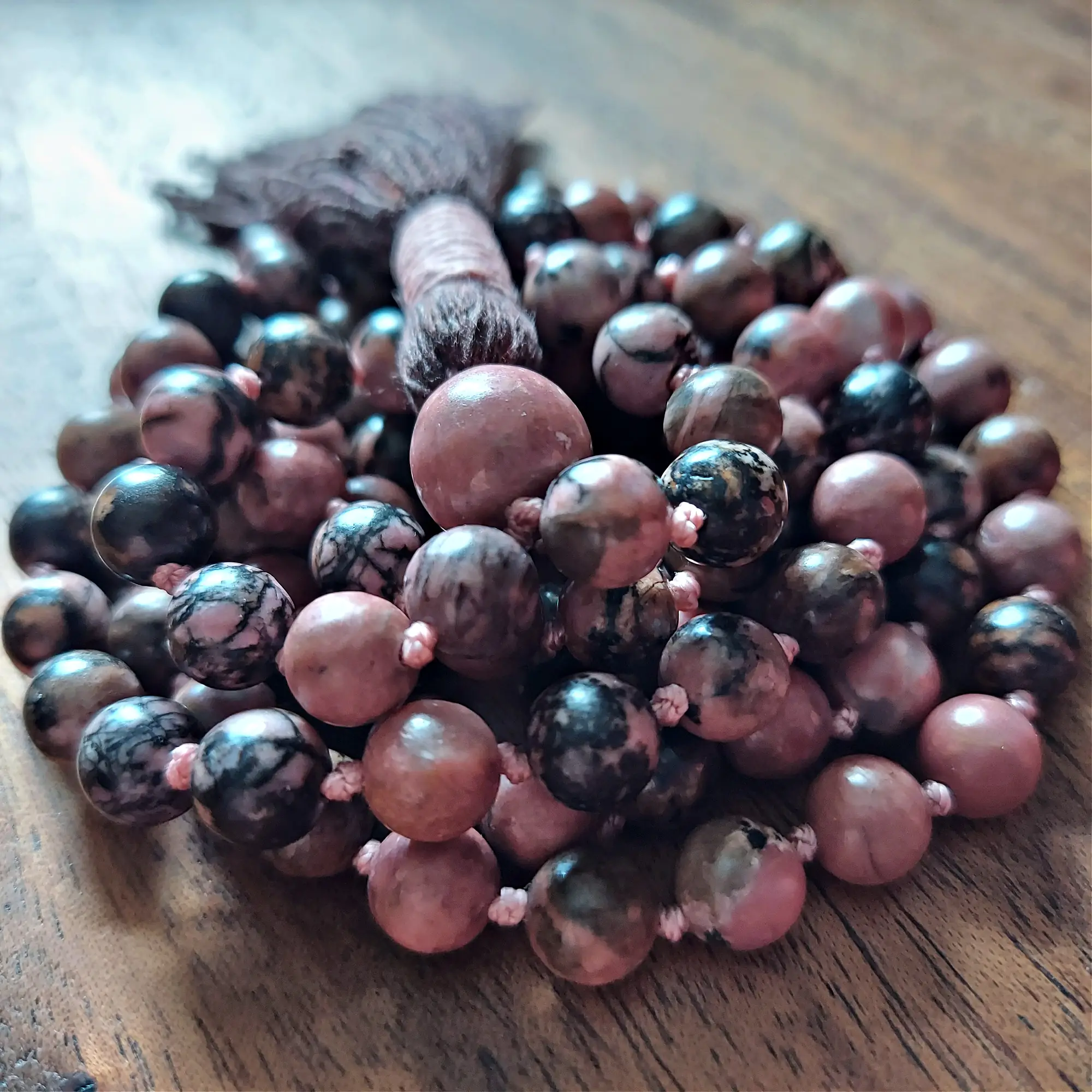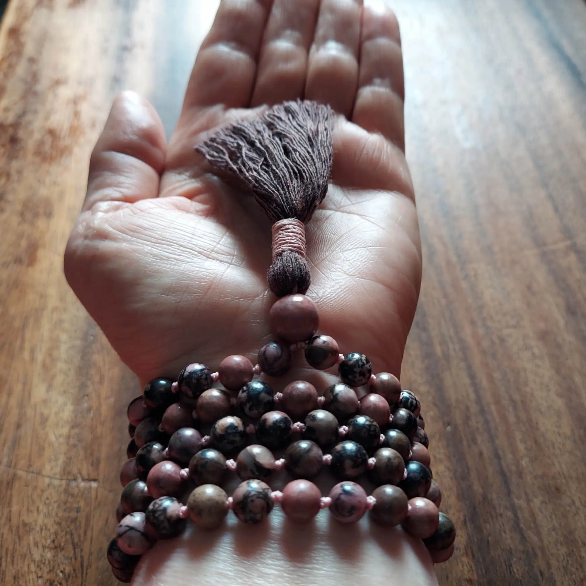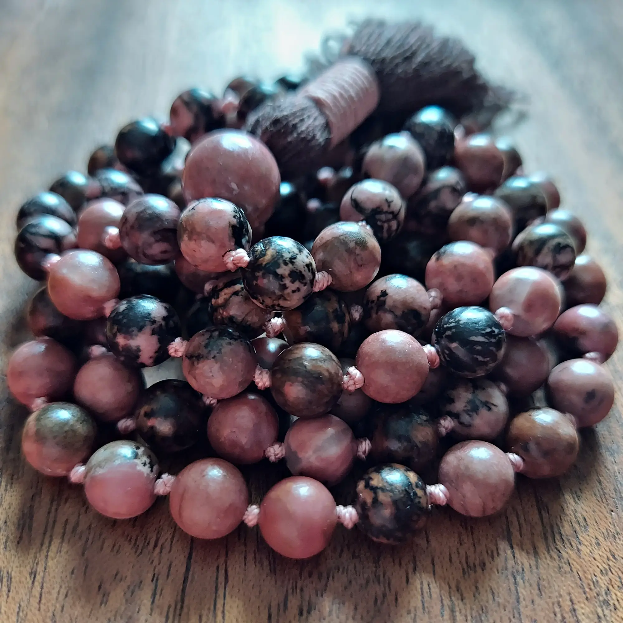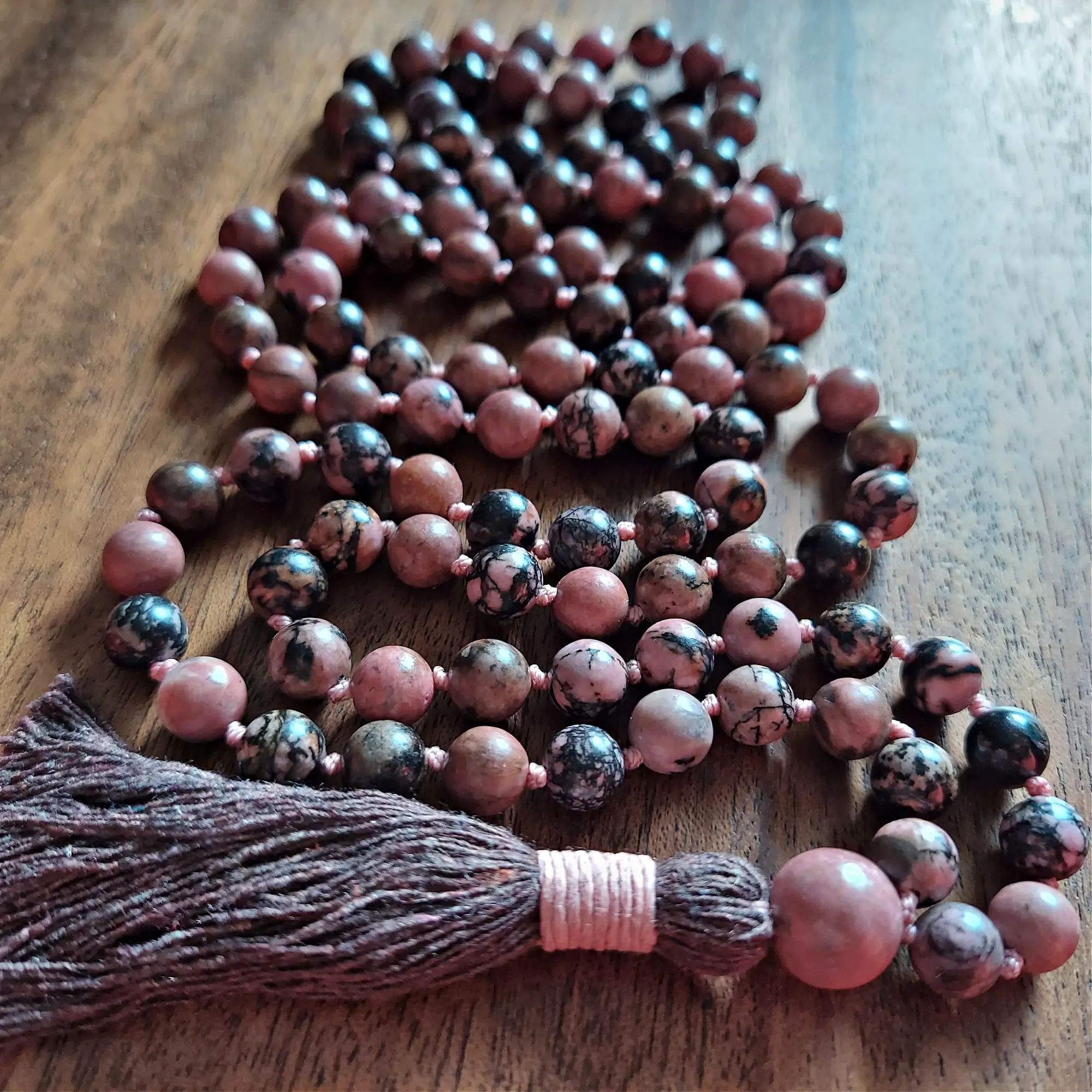 Embrace the heart-opening power of Rhodonite with this earthy yet elegant mala, made to bring balance, love, and emotional healing into your life. The soft pink and earthy tones of Rhodonite beads resonate a nurturing and grounding energy.