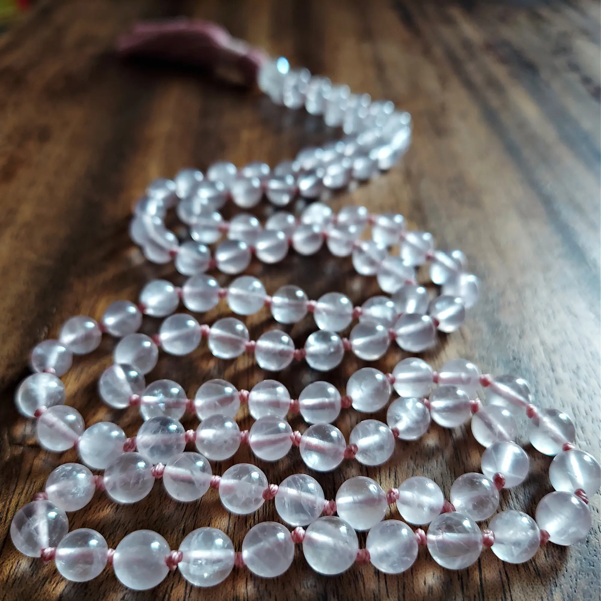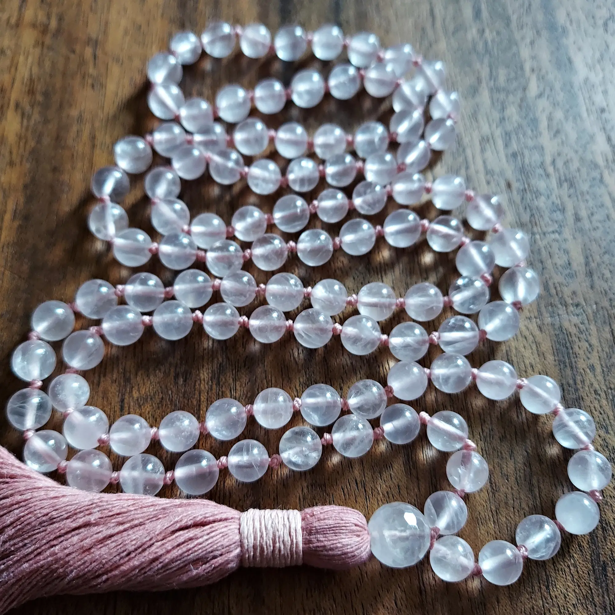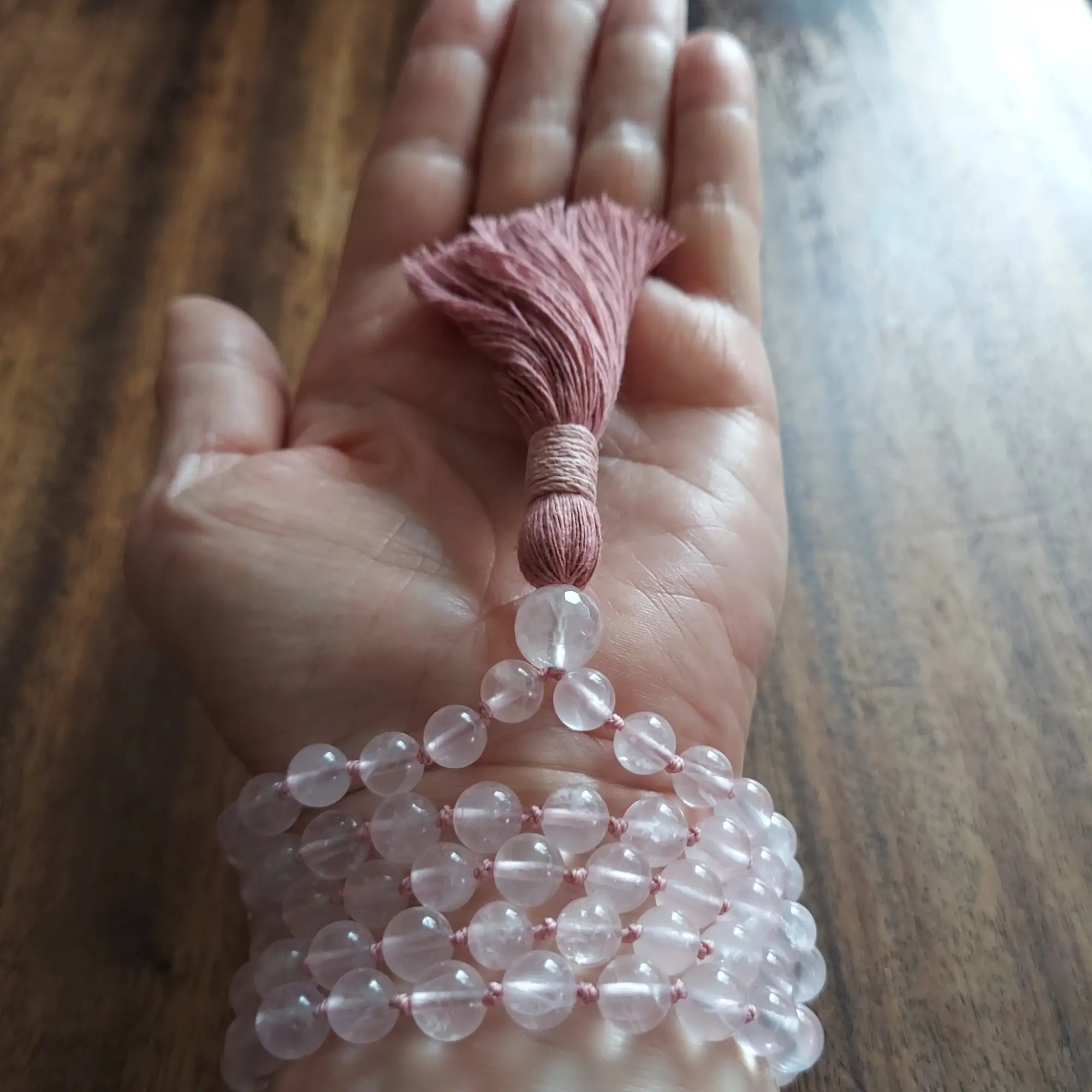 This beautiful pink Rose Quartz mala brings a gentle and sublime energy to support the Heart Chakra. This mala attracts love, brings healing, & promotes kindness & forgiveness. It just makes your world a better place!