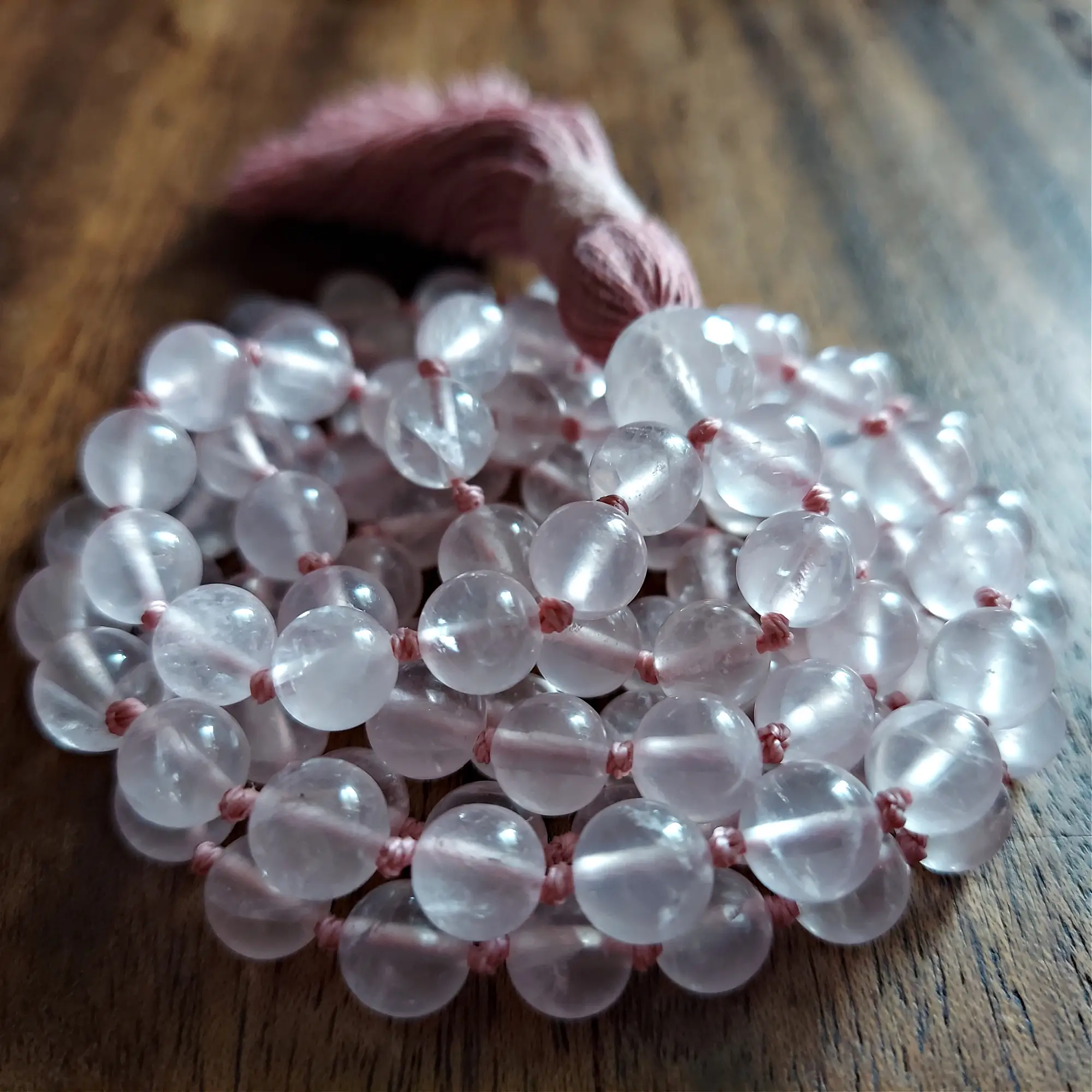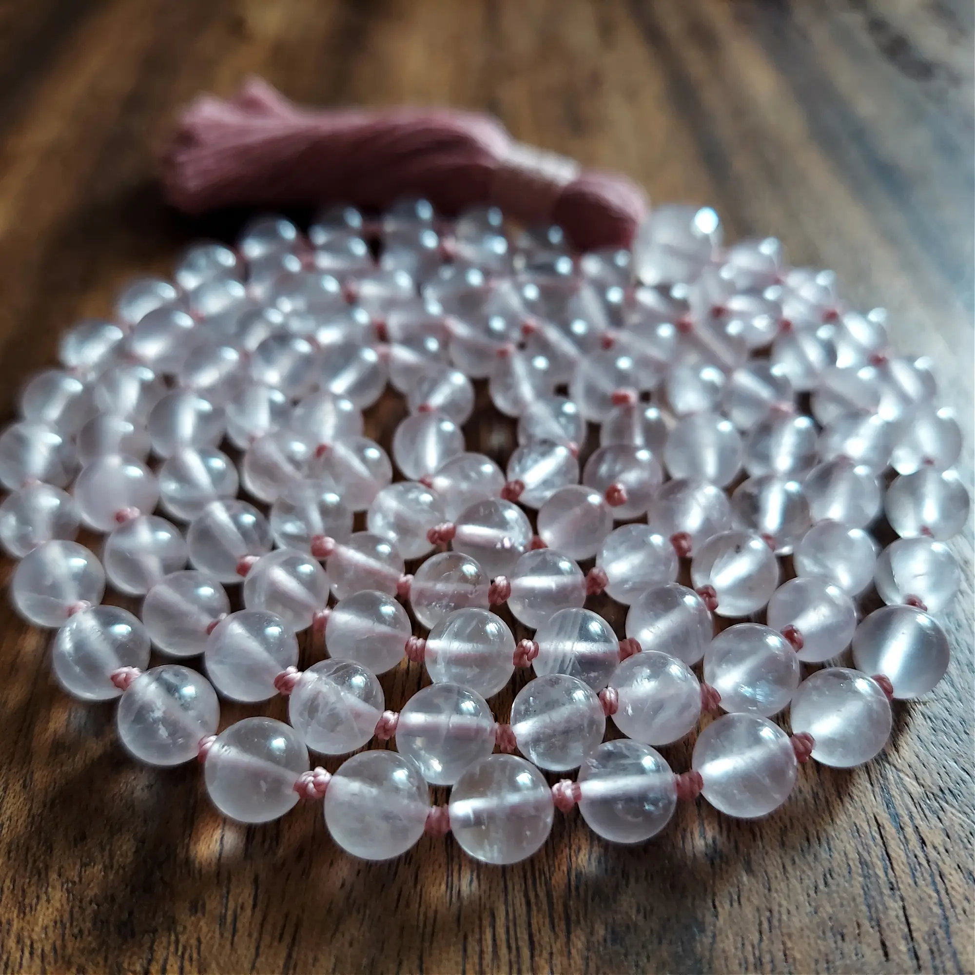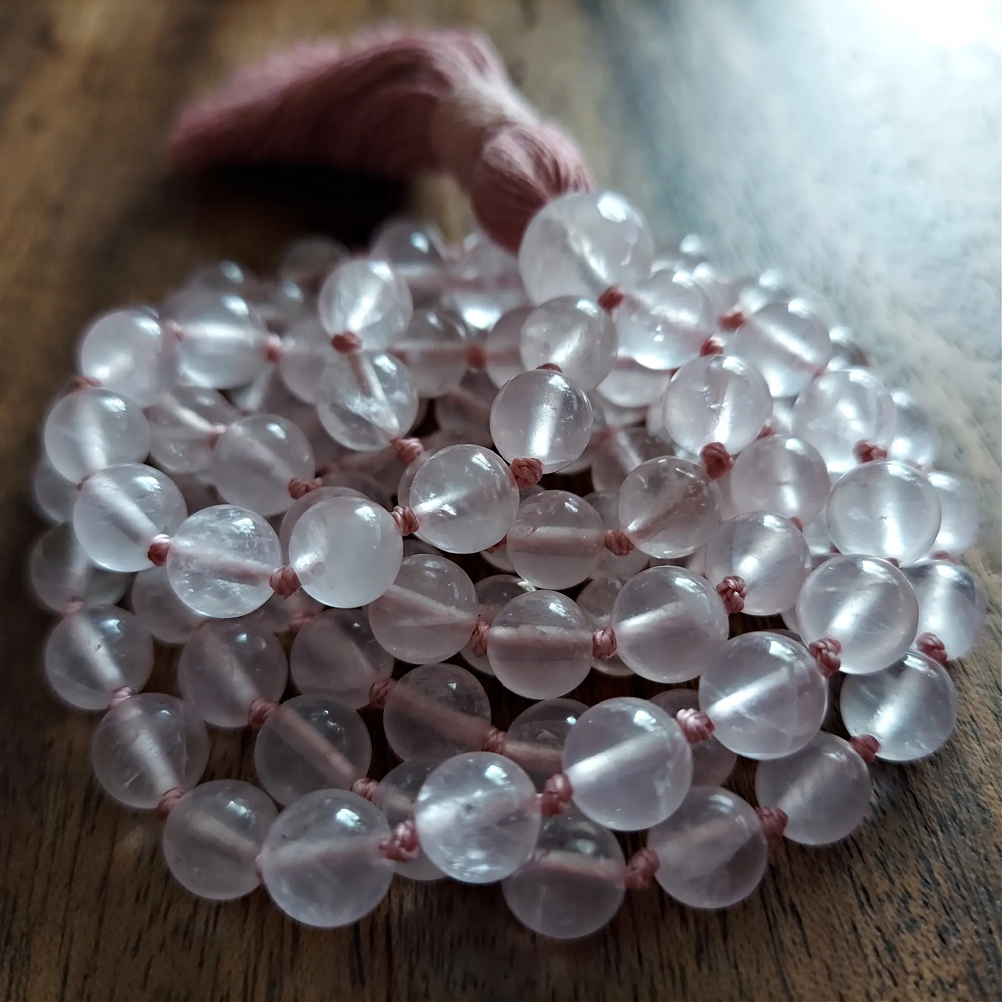 This beautiful pink Rose Quartz mala brings a gentle and sublime energy to support the Heart Chakra. This mala attracts love, brings healing, & promotes kindness & forgiveness. It just makes your world a better place!