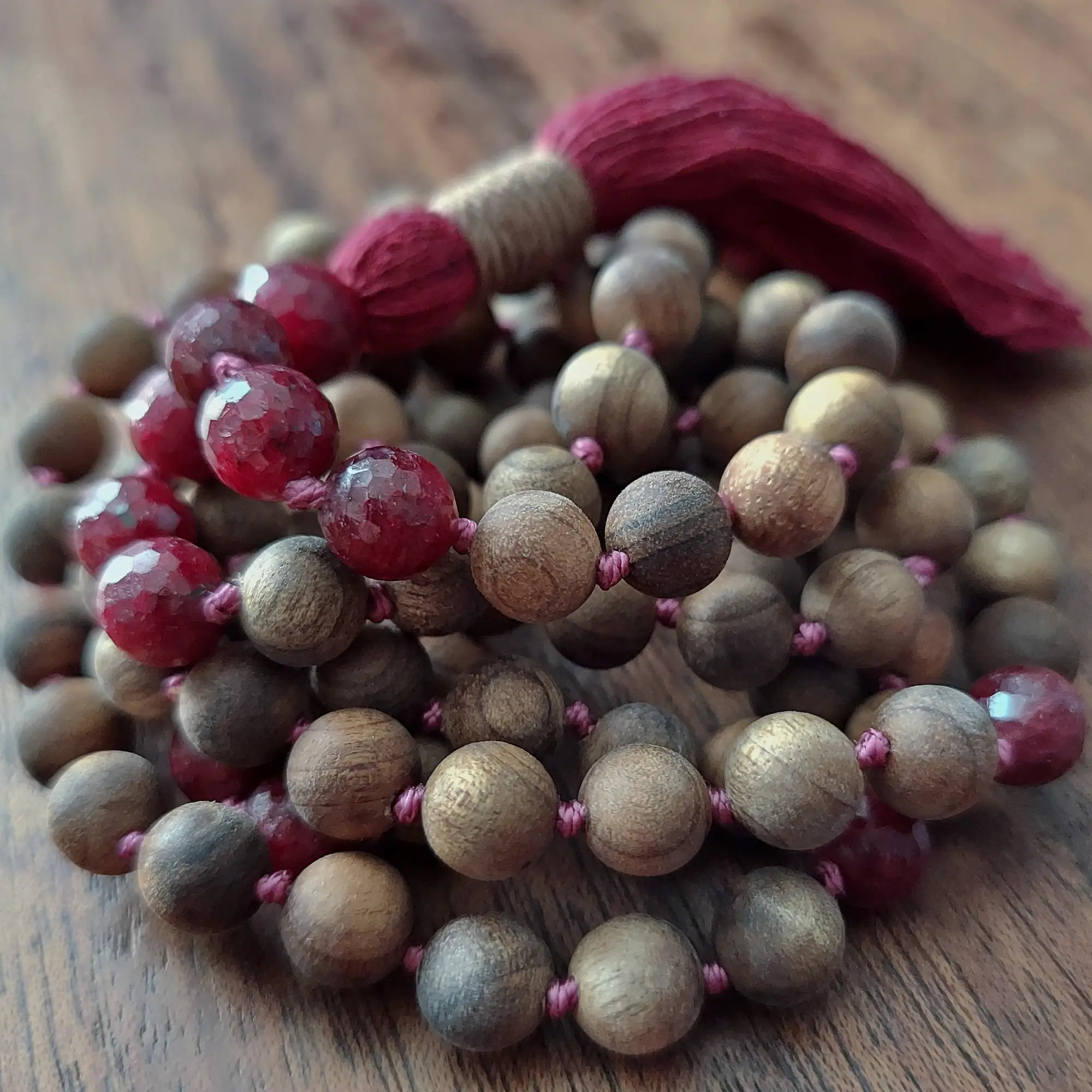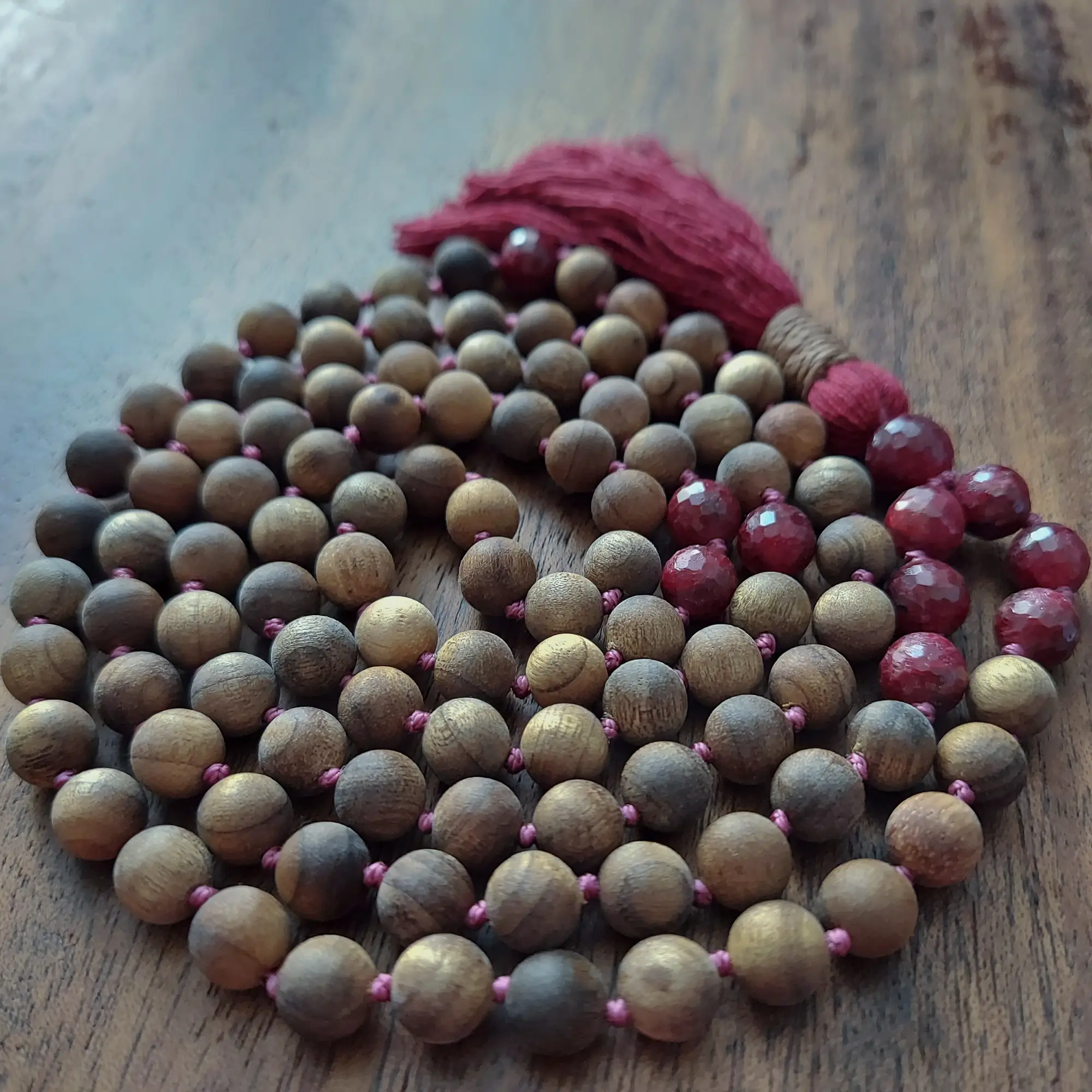 Nourish your spirit with this Genuine Red Ruby and Sandalwood Mala Necklace.