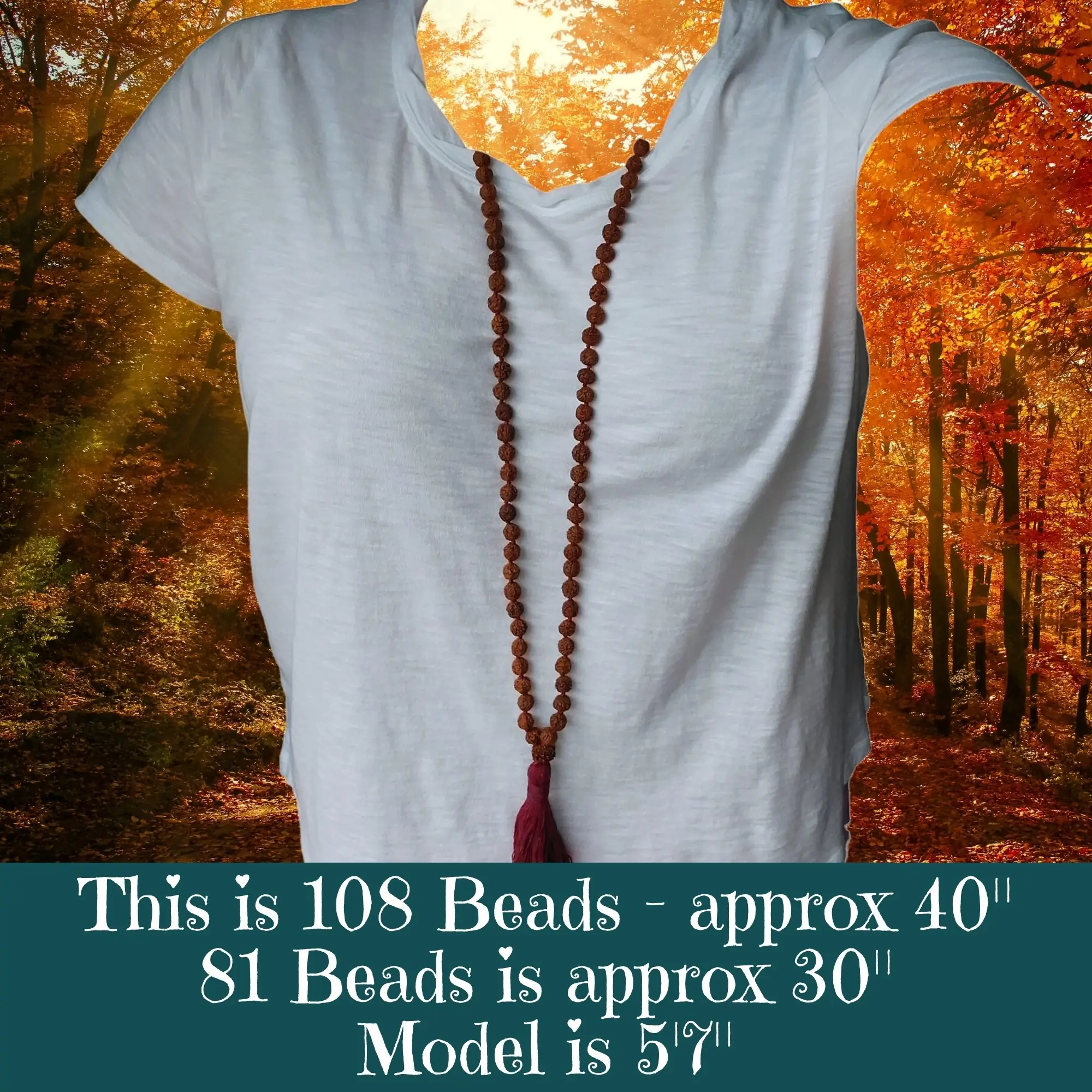Your mala beads will include a cotton tassel and nylon cord for knots, which, unlike silk, does not rot, stretch, or fray. Cotton & nylon are far superior for something we handle and wear daily.