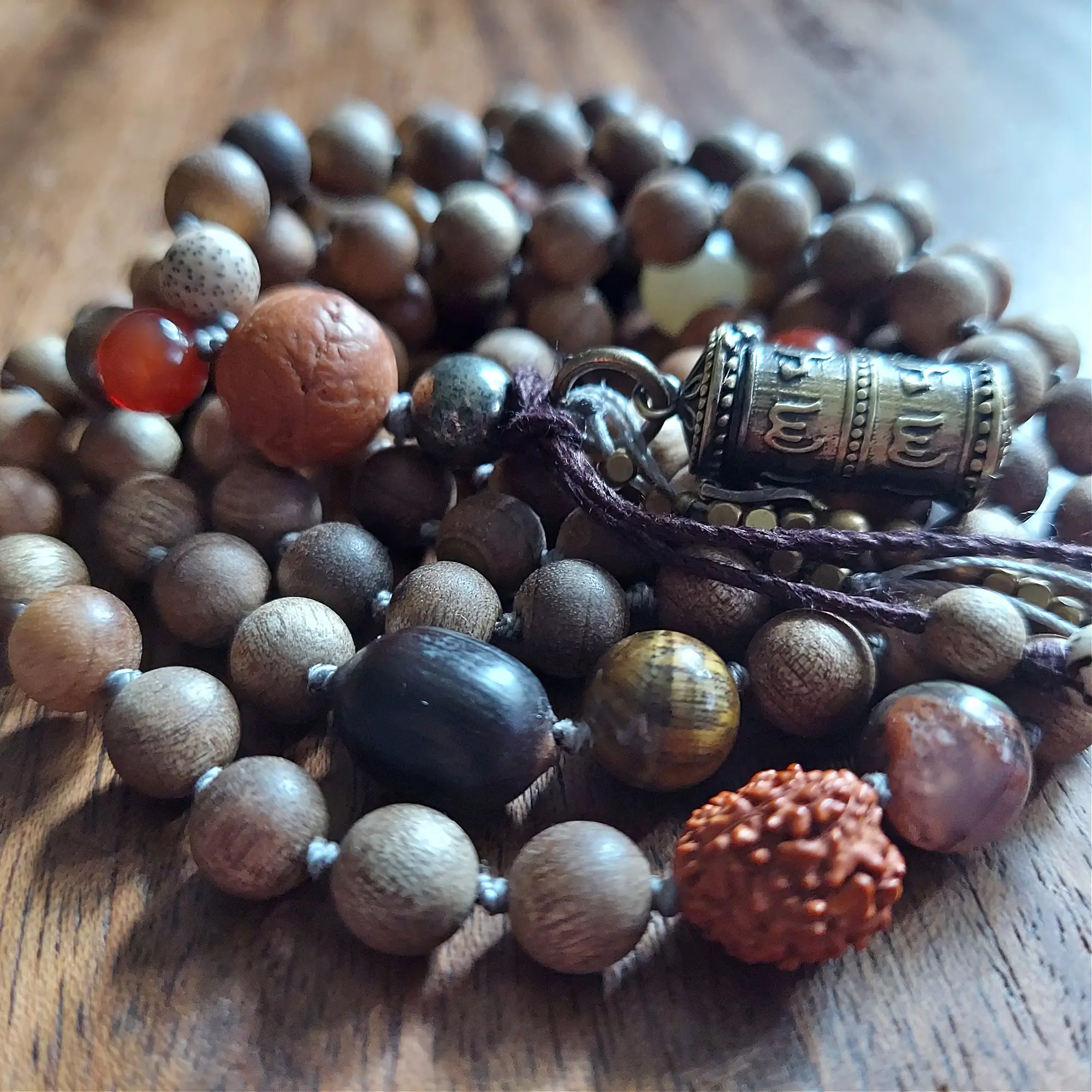 This mala embodies the perfect balance between nature’s elements and sacred symbolism.