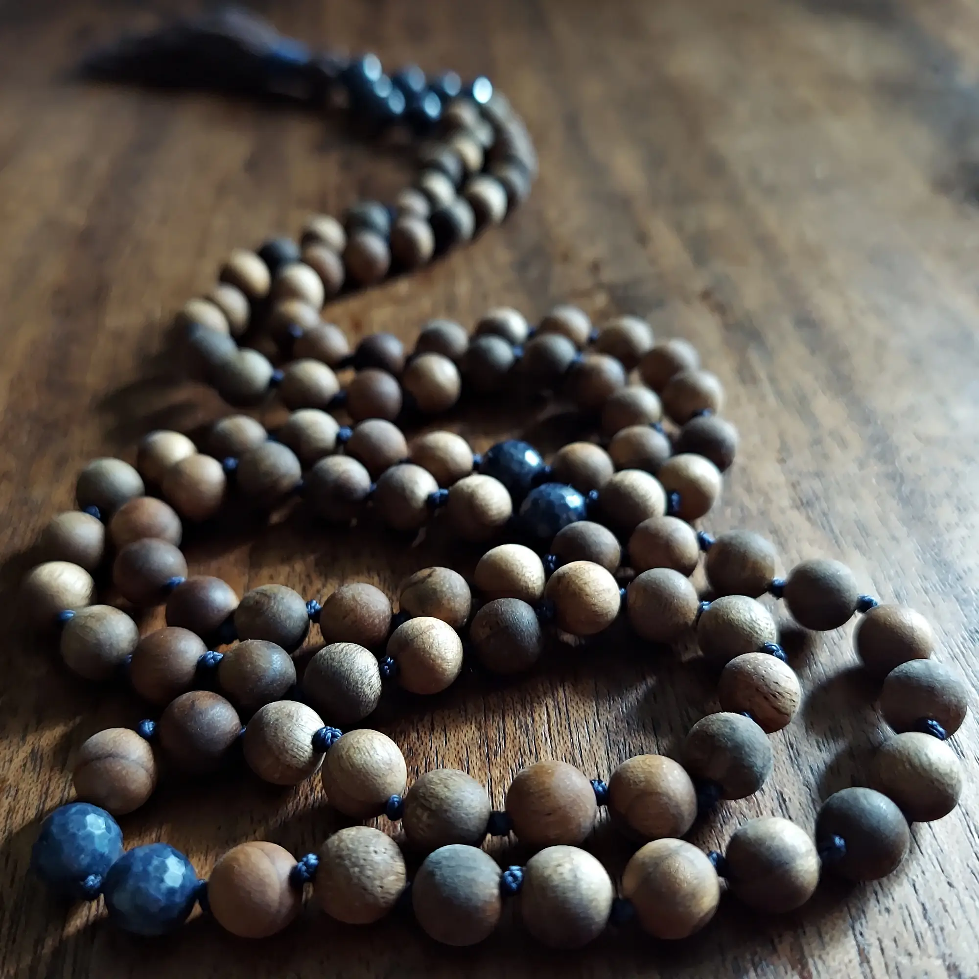 This Sapphire and Sandalwood Mala Necklace is a visually stunning piece and a potent spiritual tool. Perfect for gifting, it embodies the essence of clarity, protection, and divine wisdom, making it a meaningful addition to any collection.