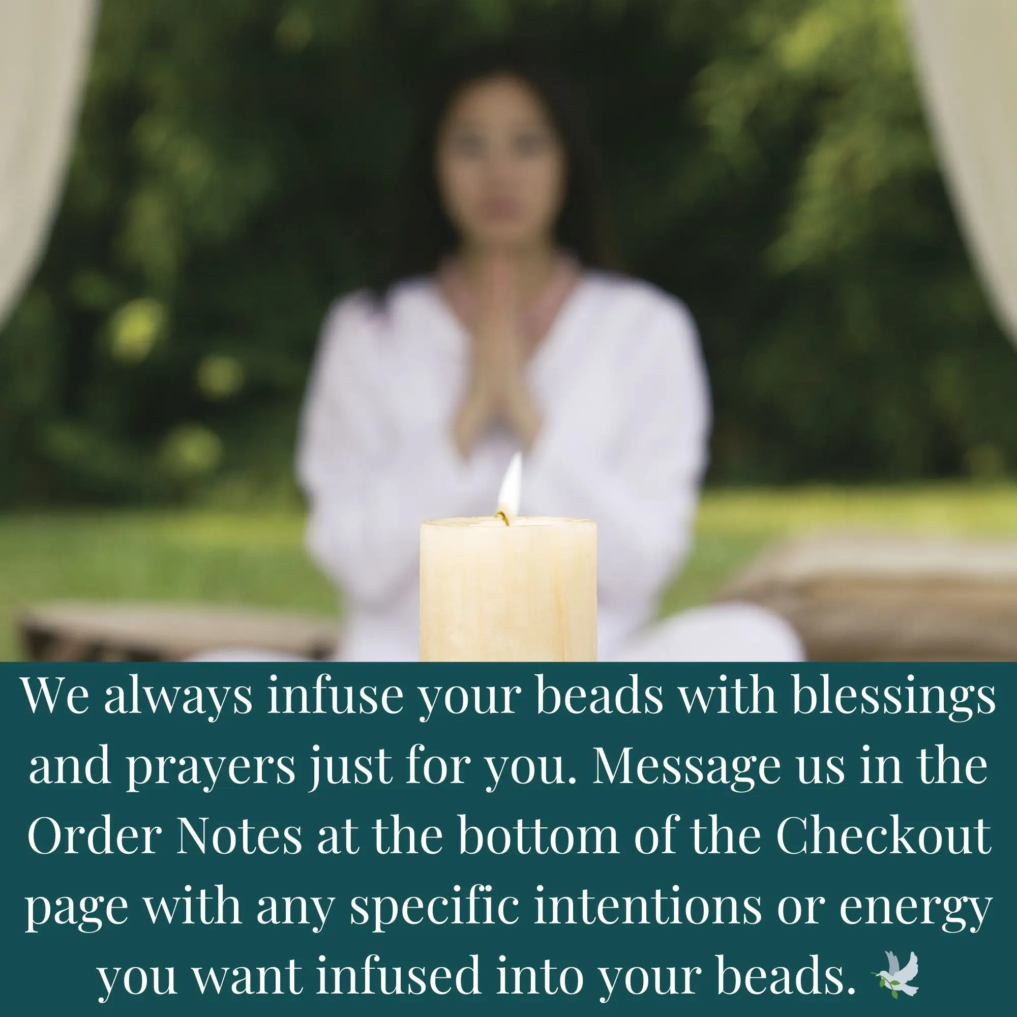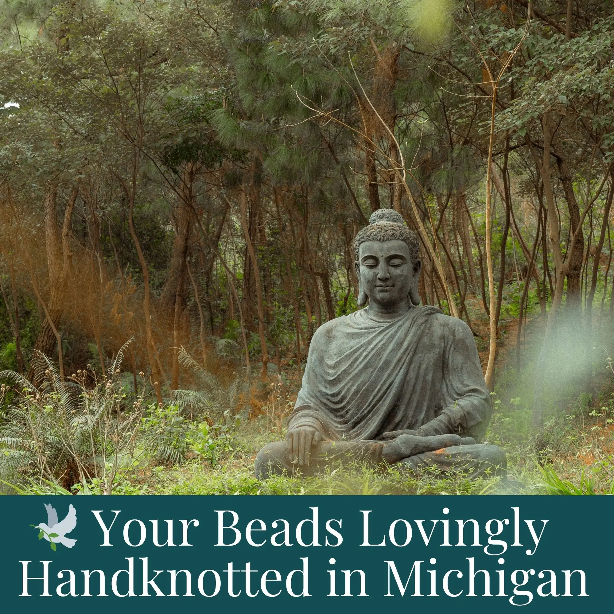 Every mala is lovingly restrung and infused with blessings for peace, protection, and prosperity (plus any intentions you share). Handmade in Michigan by me and my husband, always with care and prayer.